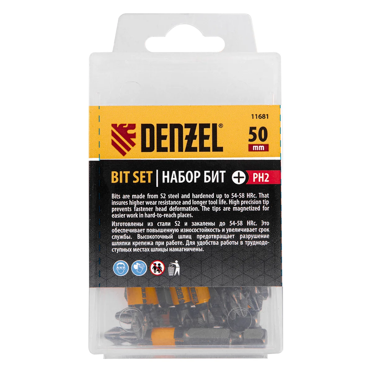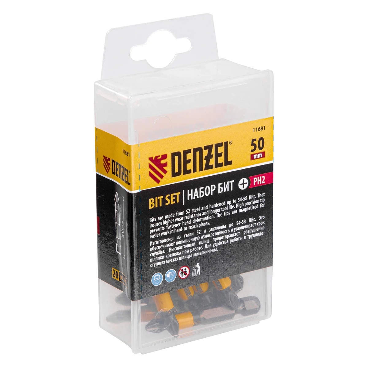 Набор односторонних бит PH2x25 Denzel 11681, поставляющийся в пластиковой коробке, состоит из 20 сменных насадок из легированной стали S2, с крестообразными шлицами и хвостовиками 1/4"", предназначенных для работы с шуруповертом. Профессиональная оснастка обеспечивает быстрый монтаж и демонтаж резьбовых соединений с углублением PH2.ПреимуществаДолговечность и износоустойчивость — биты изготовлены из японской легированной стали S2 повышенной прочности, закаленной до твердости 54-58 HRC.Эффективная работа — биты не проскальзывают, их грани не «слизываются», что усиливает контроль при работе с саморезами по дереву, а также значительно увеличивает срок службы насадок.Антикоррозийная защита — каждая насадка имеет никелированное покрытие.Комфортное использование — намагниченный шлиц удерживает крепеж, поэтому свободной рукой можно придерживать закрепляемую поверхность.20 штук в наборе — бит хватит на целую бригаду.Удобное хранение и транспортировка — насадки поставляются в пластиковом кейсе.