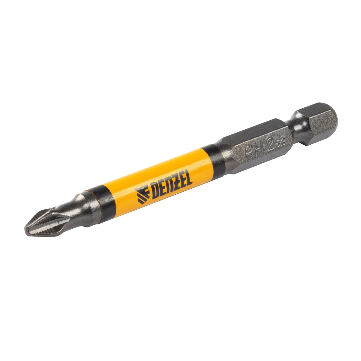 Набор односторонних битс круглым профилем PH2 x 70 мм Denzel 11643 — это 10 сменных насадок из стали S2 с крестообразными шлицами и шестигранными хвостовиками 1/4"". Профессиональная оснастка рассчитана на работу с шуруповертом, обеспечивает быстрый монтаж и демонтаж резьбовых соединений с углублением PH2.ПреимуществаДолговечность — насечки на шлице препятствуют проскальзыванию и «слизыванию» бит, дополнительно усиливают контроль при работе с саморезами по дереву.Высокая результативность даже в ограниченном пространстве — благодаря удлиненному до 70 мм профилю битами удобно работать в труднодоступных местах.Устойчивость к деформации при больших нагрузках — биты изготовлены из японской легированной стали S2 повышенной прочности и закалены до твердости 60 HRC.Намагниченный шлиц облегчает работу — крепеж удерживается битой, поэтому свободной рукой можно придерживать закрепляемую поверхность.Антикоррозионные свойства — никелированное покрытие увеличивает срок службы насадок.10 бит в комплекте — набора хватит на целую бригаду.Удобная упаковка — оснастка поставляется в двойном блистере с европодвесом.