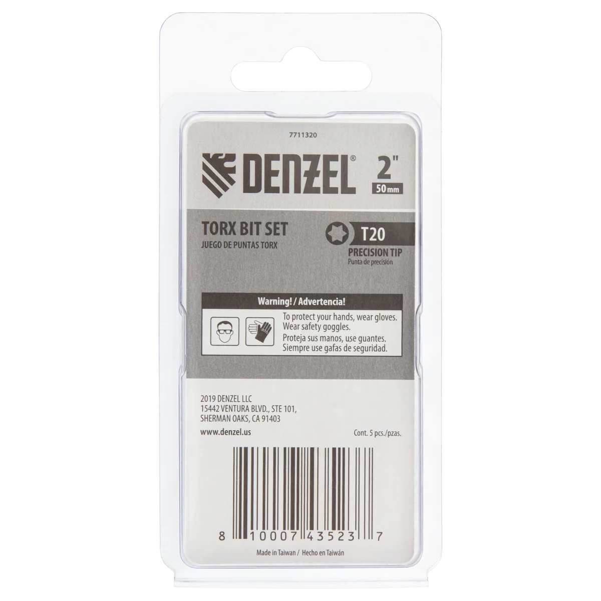 Набор бит Denzel 7711320 типоразмера T20 x 50, 5 шт. в упаковке, подходит для использования с шуруповертами, электрическими отвертками и отвертками-держателями. Используется для сборки и ремонта бытовой техники и электроприборов. Будет полезен в мастерской, пригодится также дома, в гараже и на даче.ПреимуществаПрочность и долговечность — биты из высококачественной японской стали S2 твердостью 56-60 HRC устойчивы к нагрузкам.Намагниченные рабочие части — биту с крепежом можно направлять одной рукой, придерживая другой закрепляемую деталь.Защита от подделок — все насадки поставляются с фирменным логотипом.Быстрый поиск нужной насадки — на битах имеется четкая маркировка с обозначением типоразмера.Удобная упаковка — набор упакован в двойной блистер с европодвесом для размещения на стенде.Продуманная комплектация — 5 бит хватит для выполнения большого объема работ.