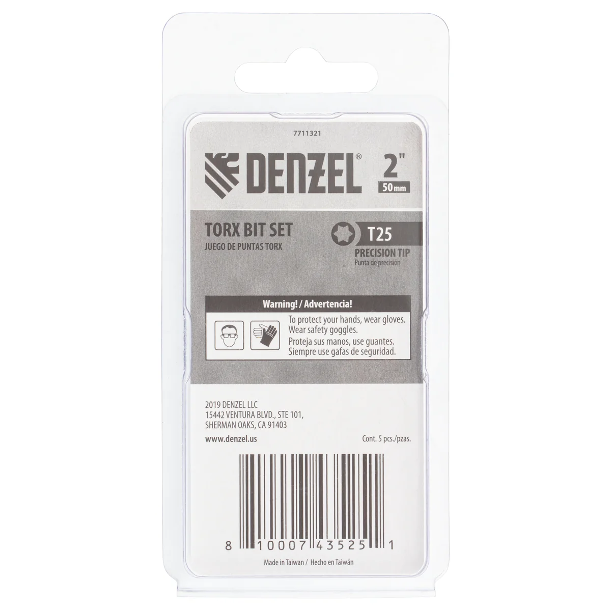 Набор бит Denzel 7711321 типоразмера T25 x 50, 5 шт. в упаковке, подходит для использования с шуруповертами, электрическими отвертками и отвертками-держателями. Используется для сборки и ремонта бытовой техники и электроприборов. Будет полезен в мастерской, пригодится также дома, в гараже и на даче.ПреимуществаПрочность и долговечность — биты из высококачественной японской стали S2 твердостью 56-60 HRC устойчивы к нагрузкам.Намагниченные рабочие части — биту с крепежом можно направлять одной рукой, придерживая другой закрепляемую деталь.Защита от подделок — все насадки поставляются с фирменным логотипом.Быстрый поиск нужной насадки — на битах имеется четкая маркировка с обозначением типоразмера.Удобная упаковка — набор упакован в двойной блистер с европодвесом для размещения на стенде.Продуманная комплектация — 5 бит хватит для выполнения большого объема работ.