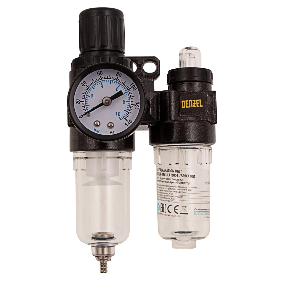 Блок подготовки воздуха регулятор-фильтр-лубрикатор FLR1500, 10 бар, 1500 л/мин, 1/4" Denzel 57469