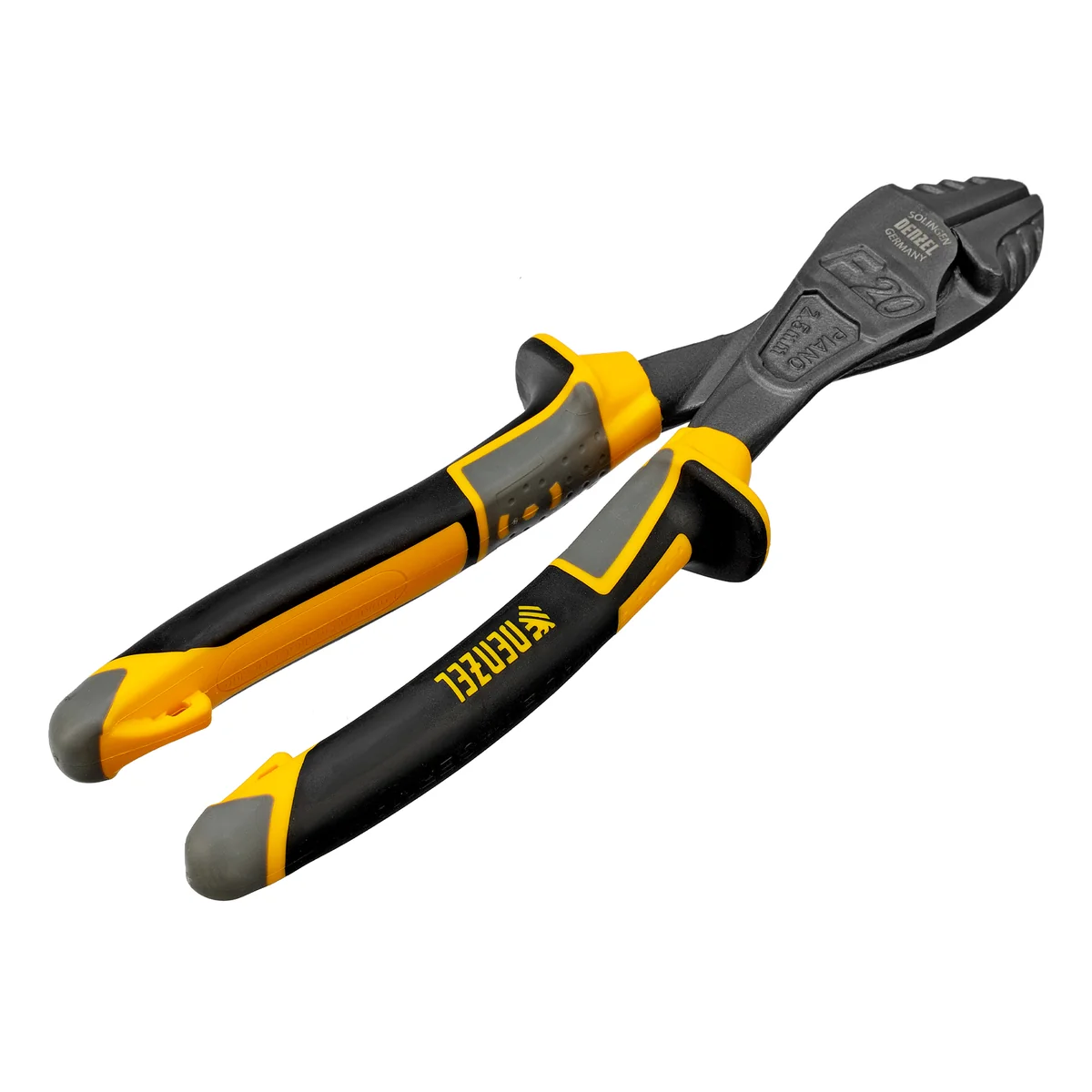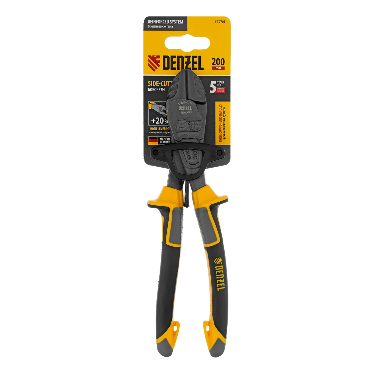 Усиленные бокорезы Denzel 17784 длиной 200 мм, с трехкомпонентными рукоятками, предназначены для разрезания кабелей, проводов, проволоки, рояльных струн и т.д. Успешно справляются не только с медными, алюминиевыми и пластмассовыми деталями, но и с более жесткими стальными элементами диаметром до 3,5 мм. Встроенный рычажный механизм и смещенный непосредственно к режущим кромкам шарнир увеличивают усилие реза на 20%.