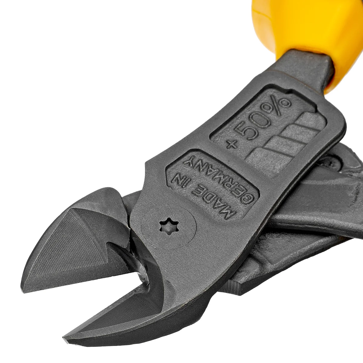 - Высокая эффективность — режущие кромки закалены до твердости 59-63 HRC, поэтому бокорезы справляются с твердыми материалами без риска поломки.