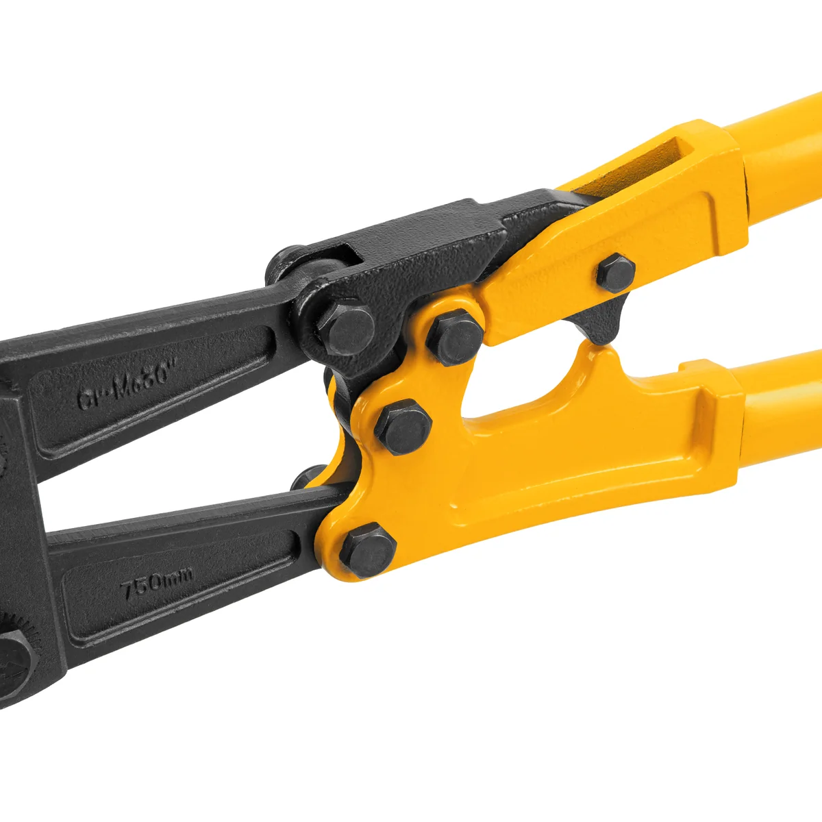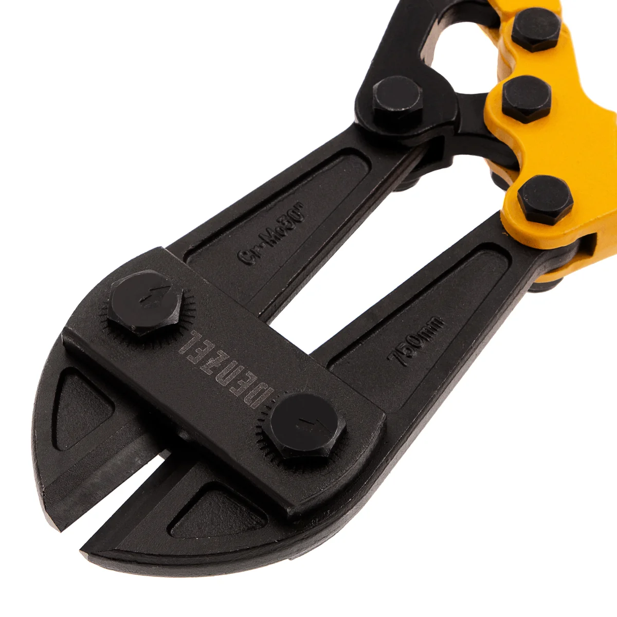 Болторез Denzel 78538 длиной 760 мм (30 дюймов), из стали Cr-Mo, предназначен для перекусывания стальных прутков диаметром 12,7 мм, болтов и шурупов, разнородной проволоки.Преимущества Износостойкие губки, выполненные из стали CrMo, обладают повышенной прочностью и жесткостью. Твердость рабочих губок 56-60 HRC позволяет работать с прочными материалами. Дополнительный рычаг уменьшает прикладываемое усилие. Эксцентриковый механизм регулирует прилегание рабочих губок друг к другу. Эргономичные рукоятки удобно лежат в руке.