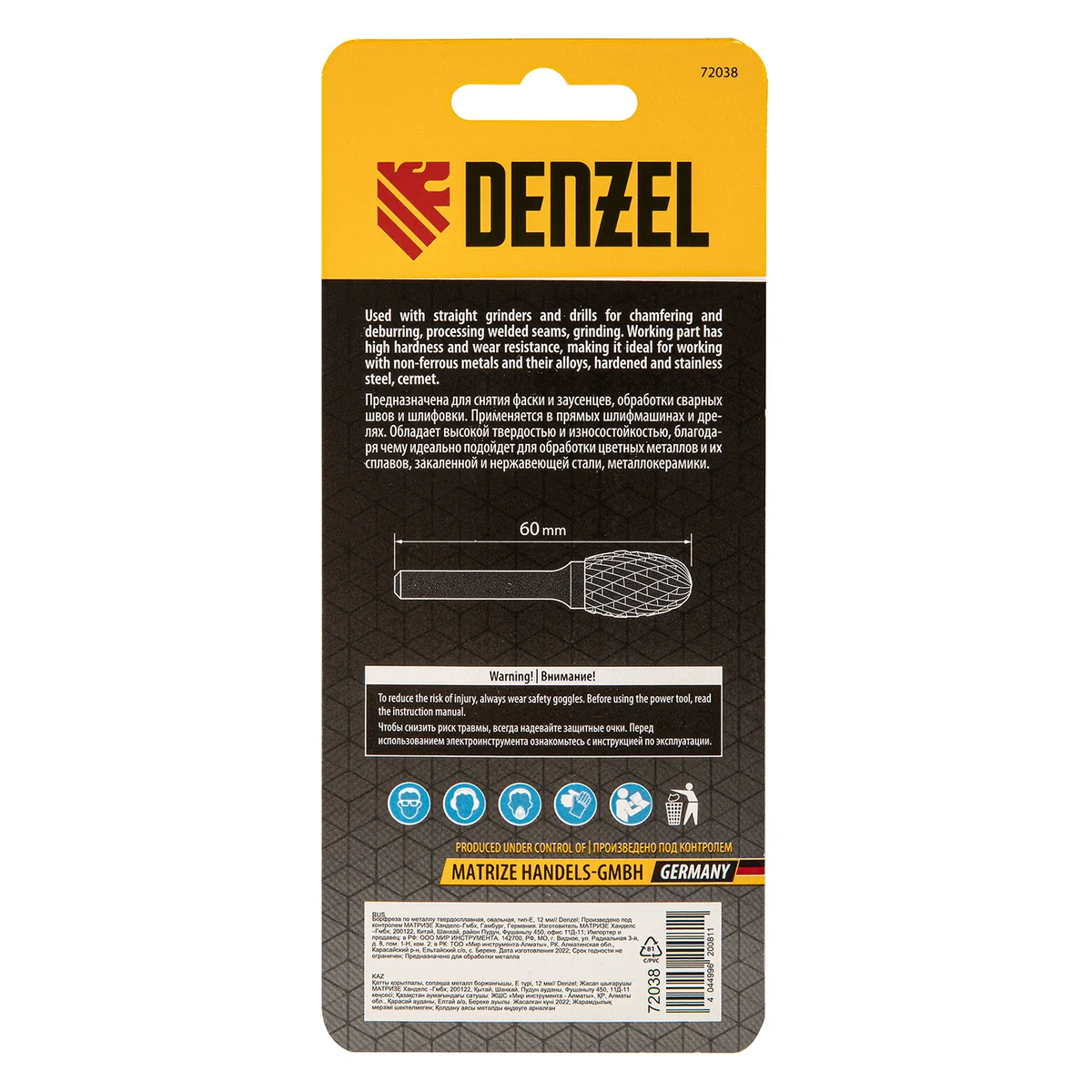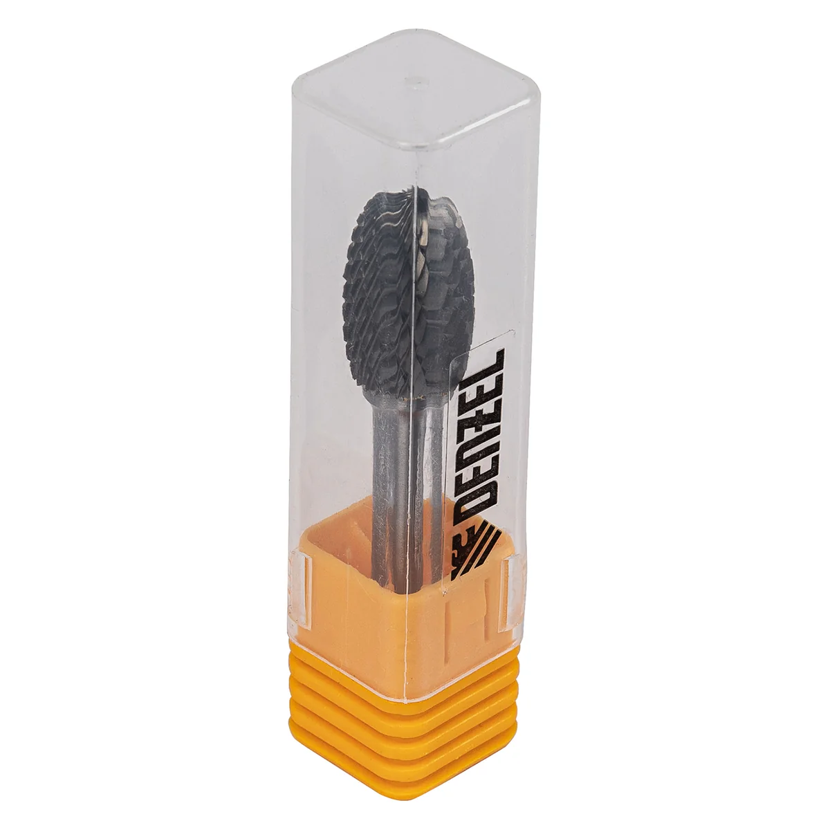Борфреза Denzel 72038 применяется в прямых шлифмашинах и дрелях для работы с нержавеющей сталью, латунью, медью, чугуном, бронзой, титаном. Предназначена для завершающей обработки и подгонки форм и поверхностей снятия фаски и заусенцев, обработки сварных швов, шлифовки.Преимущества- Твердосплавная рабоачая часть из сплава ВК8 с твердостью 88-92 HRC позволяет работать с особо прочными материалами.- Специальные перекрестные насечки-стружколомы обеспечивают облегченное удаление стружки, повышая скорость и эффективность работы- Цилиндрический хвоствоик совместим со всеми типами патронов- Практичный пластиковый кейс для удобного хранения