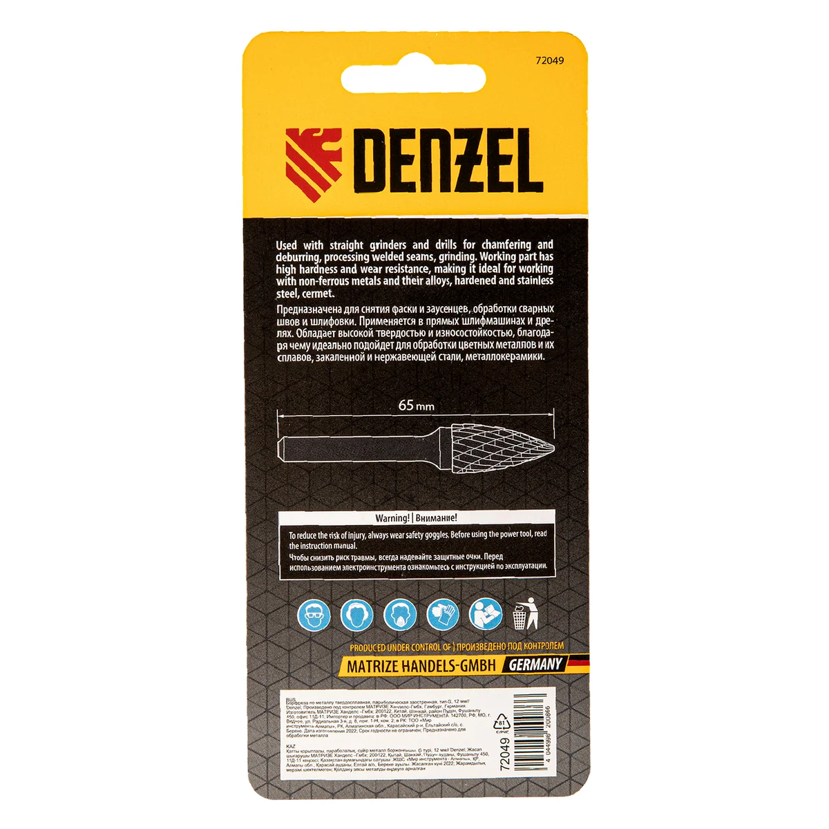 Борфреза Denzel 72049 применяется в прямых шлифмашинах и дрелях для работы с нержавеющей сталью, латунью, медью, чугуном, бронзой, титаном. Предназначена для завершающей обработки и подгонки форм и поверхностей снятия фаски и заусенцев, обработки сварных швов, шлифовки.Преимущества- Твердосплавная рабоачая часть из сплава ВК8 с твердостью 88-92 HRC позволяет работать с особо прочными материалами.- Специальные перекрестные насечки-стружколомы обеспечивают облегченное удаление стружки, повышая скорость и эффективность работы- Цилиндрический хвоствоик совместим со всеми типами патронов- Практичный пластиковый кейс для удобного хранения
