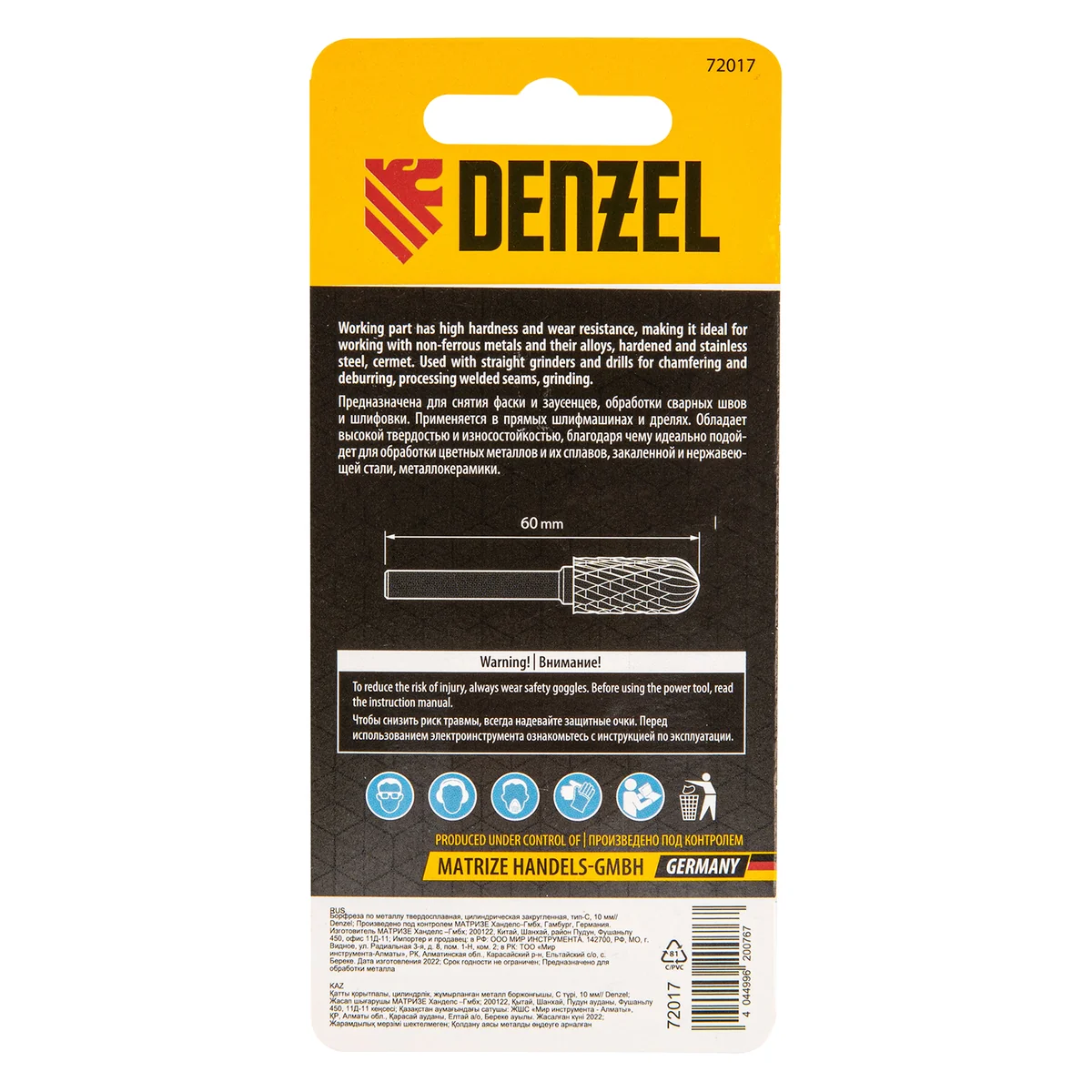 Борфреза Denzel 72017 применяется в прямых шлифмашинах и дрелях для работы с нержавеющей сталью, латунью, медью, чугуном, бронзой, титаном. Предназначена для завершающей обработки и подгонки форм и поверхностей снятия фаски и заусенцев, обработки сварных швов, шлифовки.Преимущества- Твердосплавная рабоачая часть из сплава ВК8 с твердостью 88-92 HRC позволяет работать с особо прочными материалами.- Специальные перекрестные насечки-стружколомы обеспечивают облегченное удаление стружки, повышая скорость и эффективность работы- Цилиндрический хвоствоик совместим со всеми типами патронов- Практичный пластиковый кейс для удобного хранения