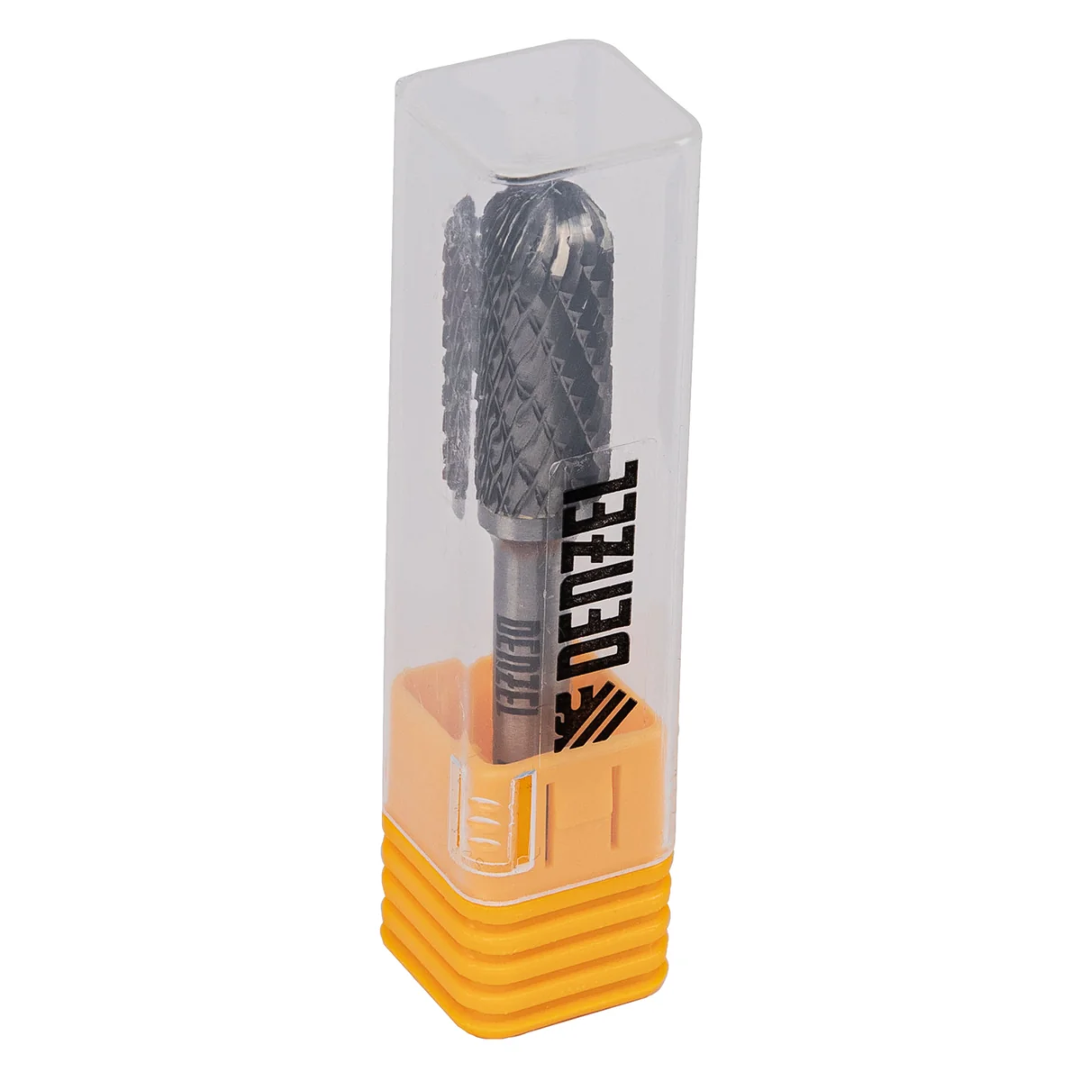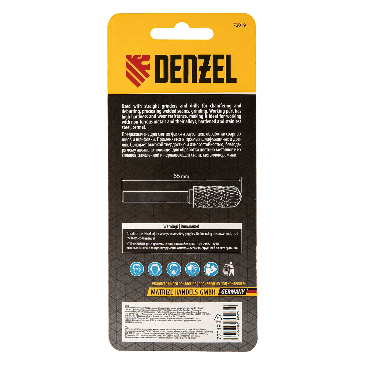 Борфреза Denzel 72019 применяется в прямых шлифмашинах и дрелях для работы с нержавеющей сталью, латунью, медью, чугуном, бронзой, титаном. Предназначена для завершающей обработки и подгонки форм и поверхностей снятия фаски и заусенцев, обработки сварных швов, шлифовки.Преимущества- Твердосплавная рабоачая часть из сплава ВК8 с твердостью 88-92 HRC позволяет работать с особо прочными материалами.- Специальные перекрестные насечки-стружколомы обеспечивают облегченное удаление стружки, повышая скорость и эффективность работы- Цилиндрический хвоствоик совместим со всеми типами патронов- Практичный пластиковый кейс для удобного хранения