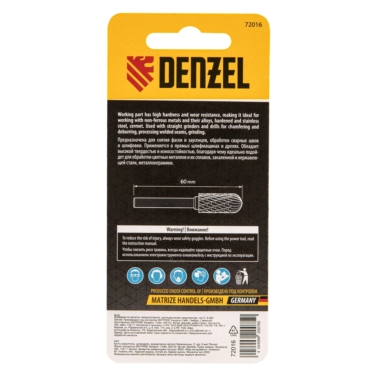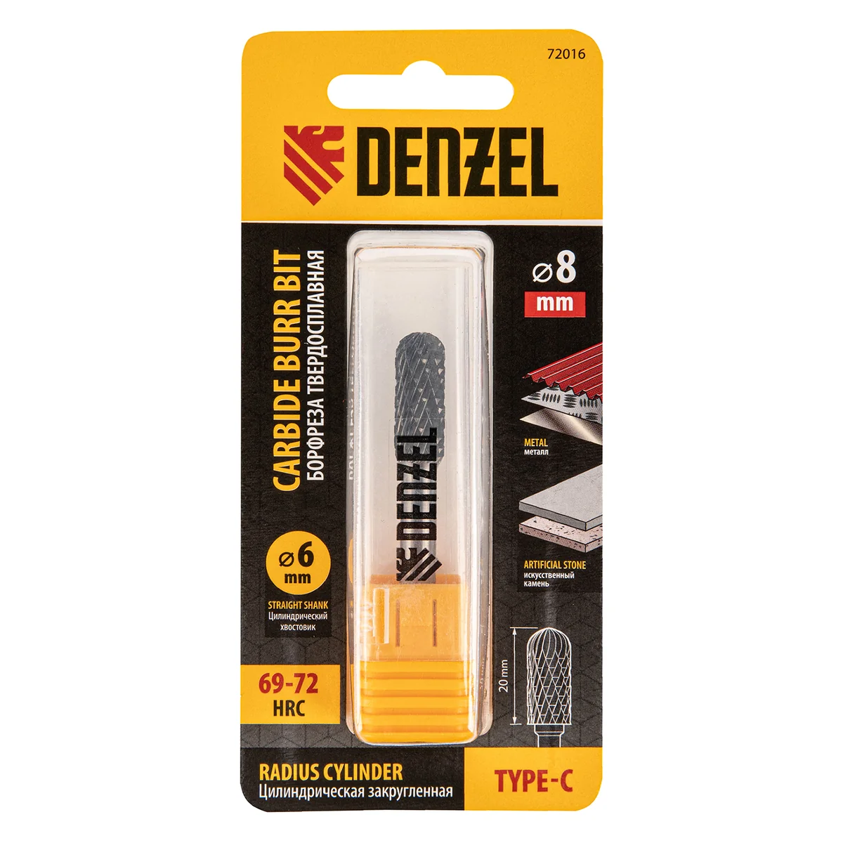 Борфреза Denzel 72016 применяется в прямых шлифмашинах и дрелях для работы с нержавеющей сталью, латунью, медью, чугуном, бронзой, титаном. Предназначена для завершающей обработки и подгонки форм и поверхностей снятия фаски и заусенцев, обработки сварных швов, шлифовки.Преимущества- Твердосплавная рабоачая часть из сплава ВК8 с твердостью 88-92 HRC позволяет работать с особо прочными материалами.- Специальные перекрестные насечки-стружколомы обеспечивают облегченное удаление стружки, повышая скорость и эффективность работы- Цилиндрический хвоствоик совместим со всеми типами патронов- Практичный пластиковый кейс для удобного хранения