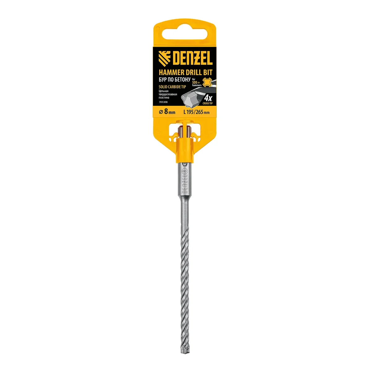 Бур по бетону, цельная крестовая пластина, 8x265 мм, SDS PLUS Denzel 705308