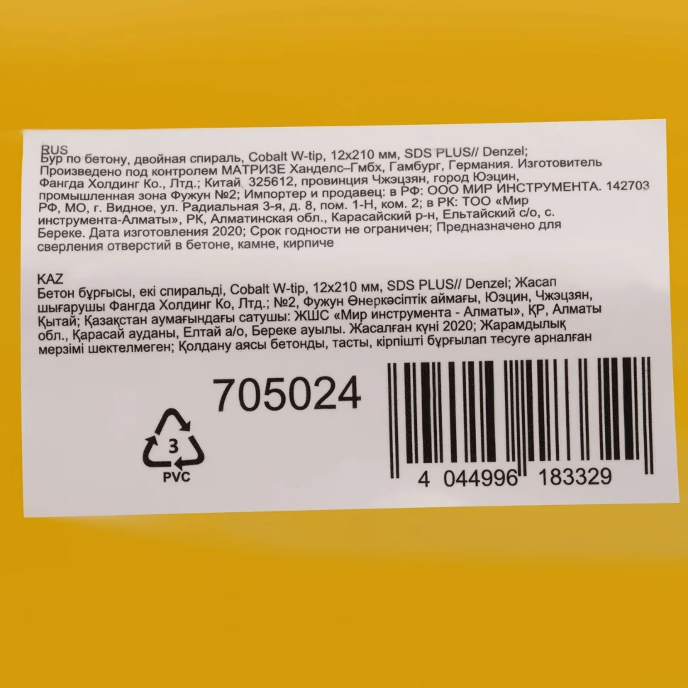 Бур по бетону Denzel арт. 705024 с хвостовиком SDS PLUS и двойной спиралью предназначен для сверления отверстий в бетоне, кирпиче и камне. Он используется в качестве оснастки для перфораторов с патроном SDS Plus. Бур оптимален для проведения строительных, ремонтных, монтажных работ.ПреимуществаВысокий ресурс — режущая твердосплавная пластина из стали ВК8 твердостью 80-90 HRC с W-образной заточкой способна сверлить отверстия до 30% быстрее, в том числе при работе с камнем.Прочность и износостойкость — рабочая часть из легированной стали 40Х выдерживает интенсивные и длительные ударные нагрузки, а также делает бур самым высокопроизводительным среди аналогов средней цены.Двойная спираль и канавка с дополнительным желобом — за счет более эффективного отвода шлама рабочая часть не перегревается, что позволяет продлить срок службы бура.Удобная упаковка с европодвесом — оснастку можно разместить на стенде.