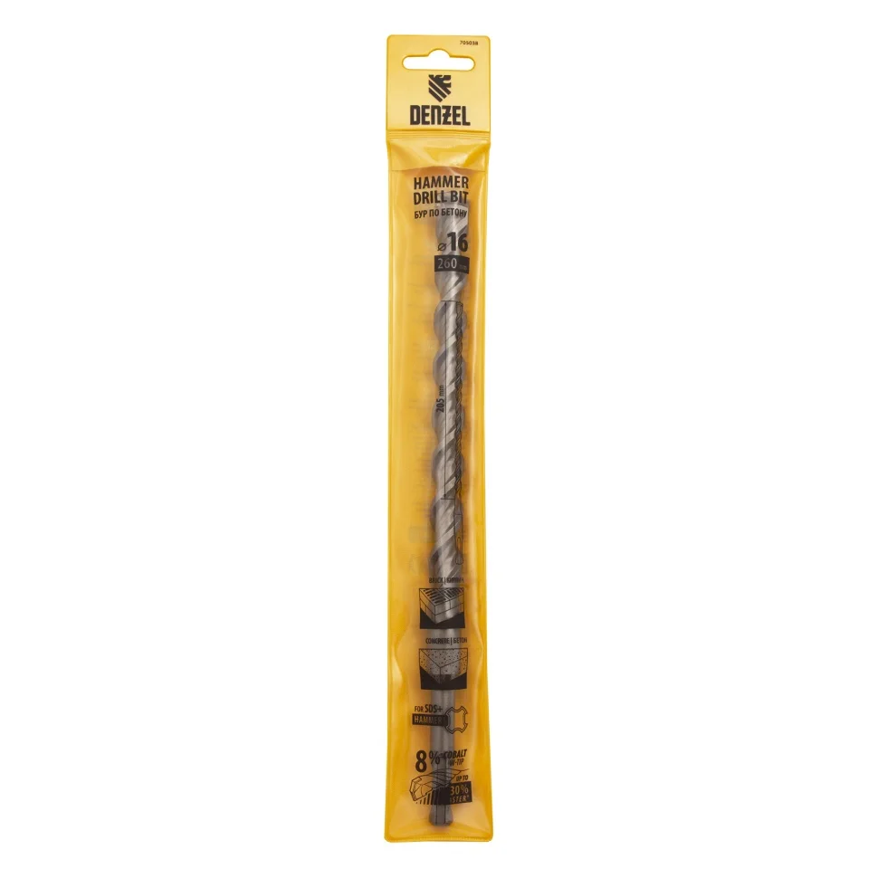Бур по бетону, двойная спираль, три пылеотводящие кромки, 16 x 260 мм DENZEL 705038