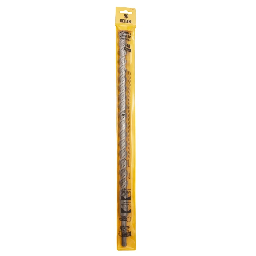 Бур по бетону, двойная спираль, три пылеотводящие кромки, 18 x 460 мм DENZEL 705045