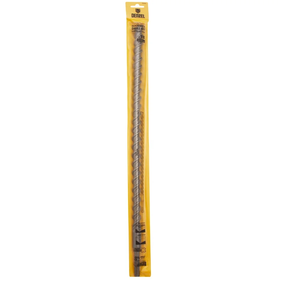 Бур по бетону, двойная спираль, три пылеотводящие кромки, 18 x 600 мм DENZEL 705046