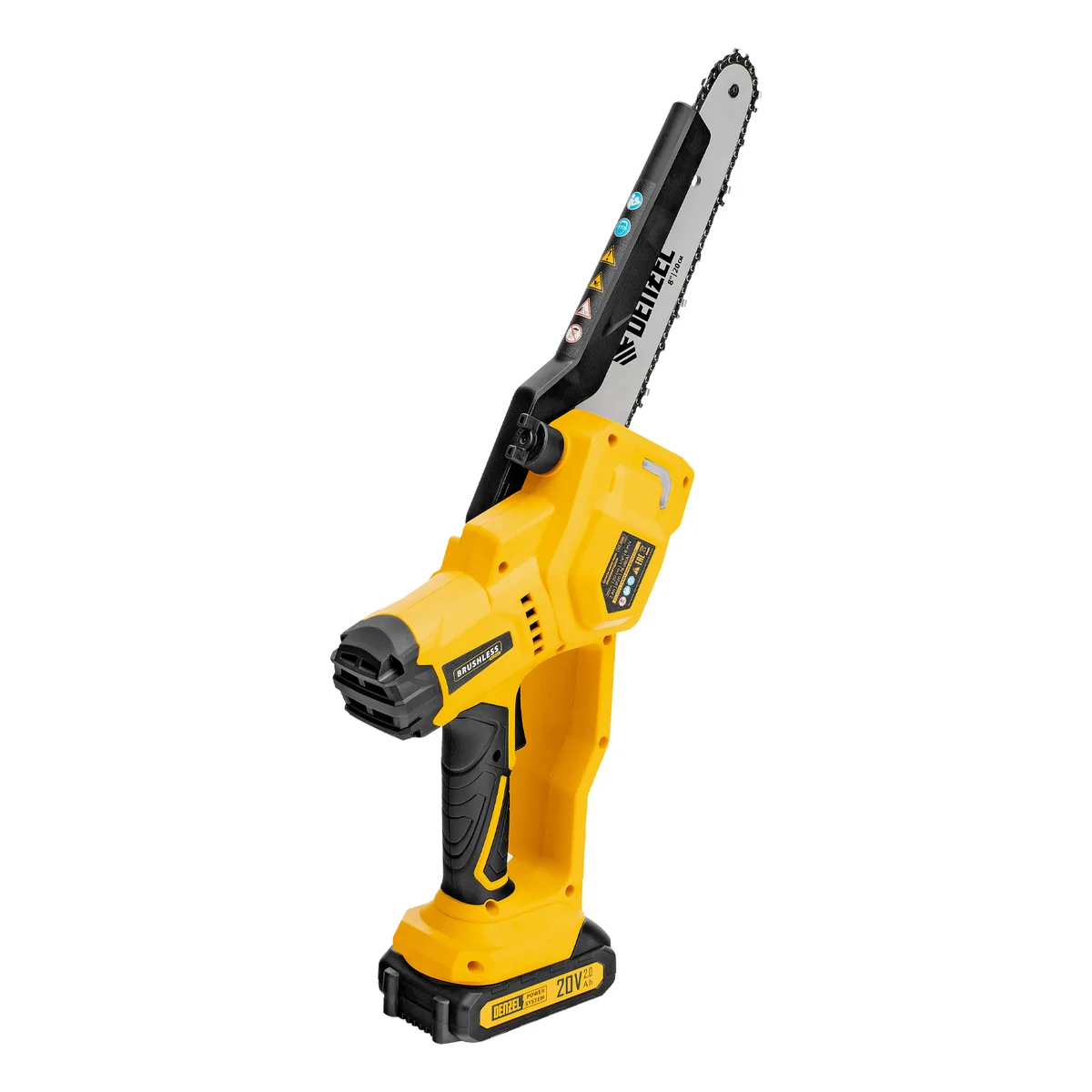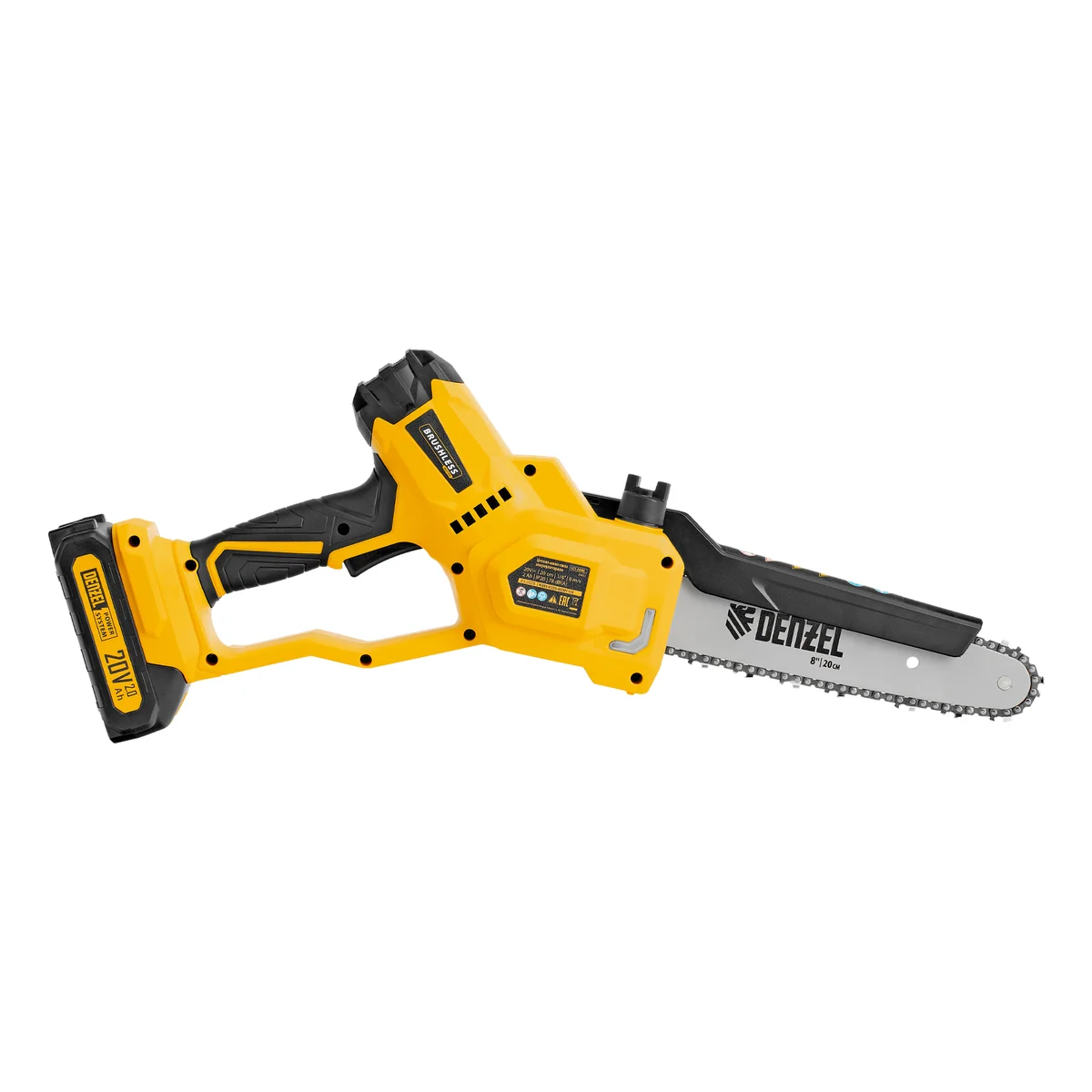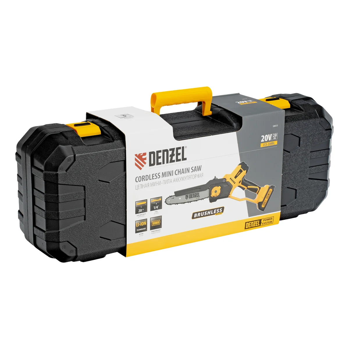 Цепная мини-пила аккумуляторная бесщет., СCS-200BL, шина 200 мм, Li-Ion, 20 В Denzel 58653
