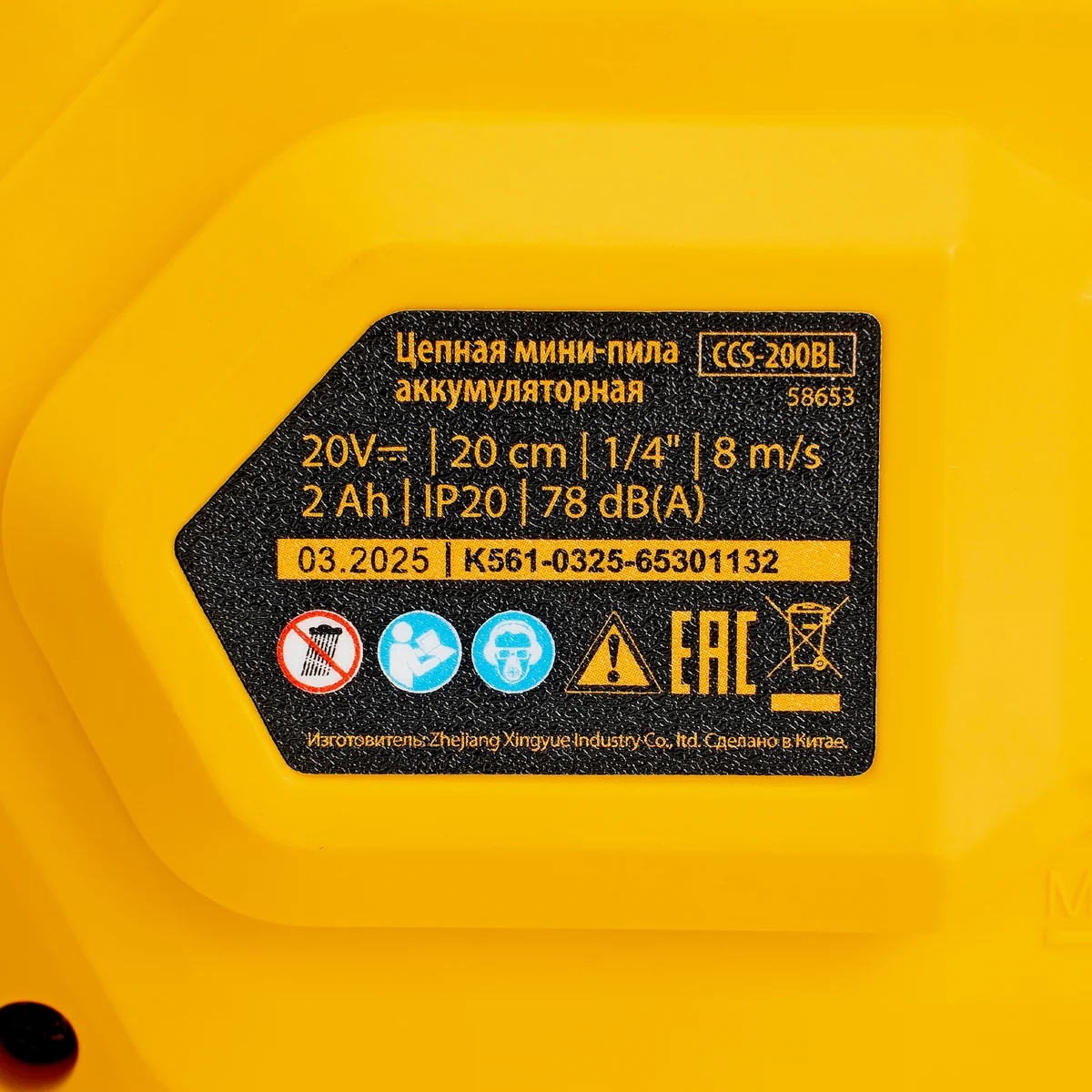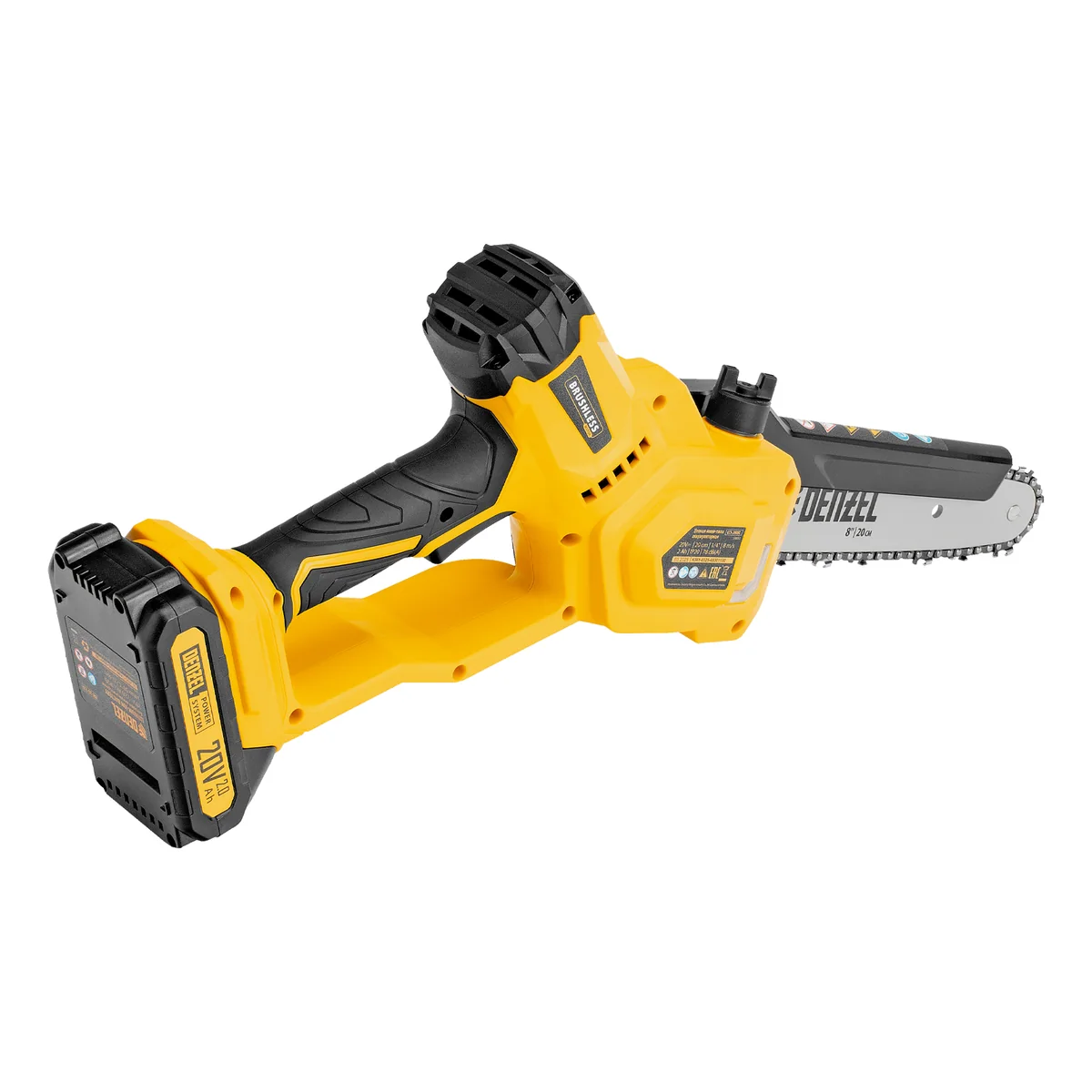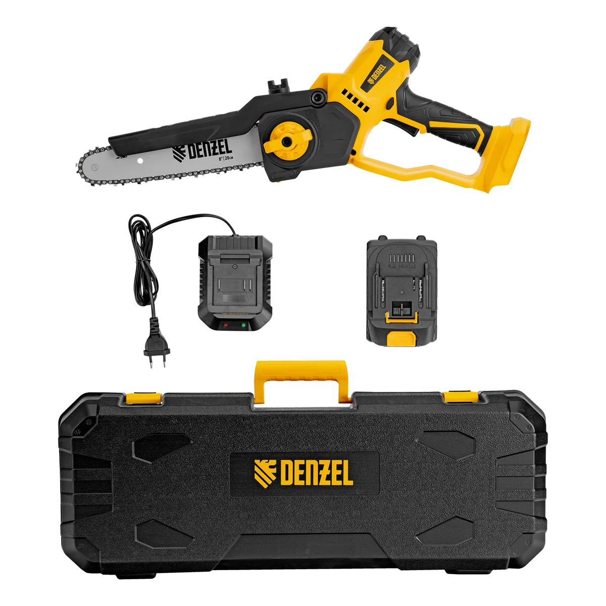 Цепная мини-пила аккумуляторная бесщет., СCS-200BL, шина 200 мм, Li-Ion, 20 В Denzel 58653