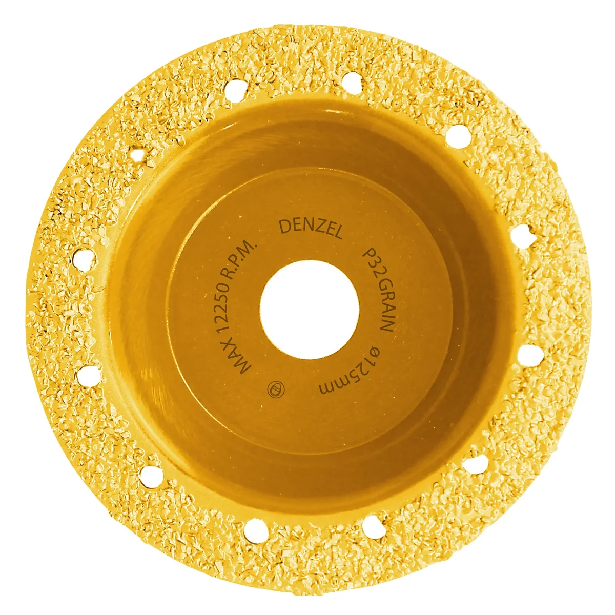 Чашка твёрдосплавная зачистная,125 мм, Наклонная, мелкое зерно #32 Denzel 72979