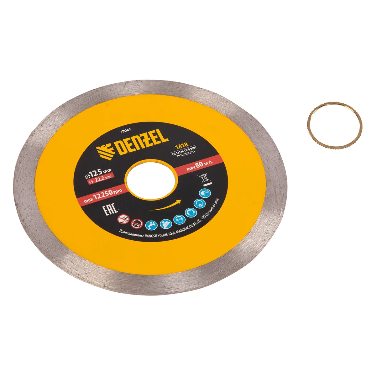 Алмазный диск ТМ Denzel "Сплошной" арт 73045, ф125 х 22,2 мм, предназначен для мокрого резания мрамора, керамогранита и керамическую плитки, камня. Устанавливается на УШМ (болгарку) или плиткорез с посадочным диаметром 22,2 мм. Высокая концентрация алмазов и супертонкая рабочая часть диска обеспечивает идеальную частоту кромок и высокую скорость реза.Диск произведен по технологии горячего прессования с увеличенной шириной режущей кромки (10мм) подходит для профессионального использования и больших объемов работ.