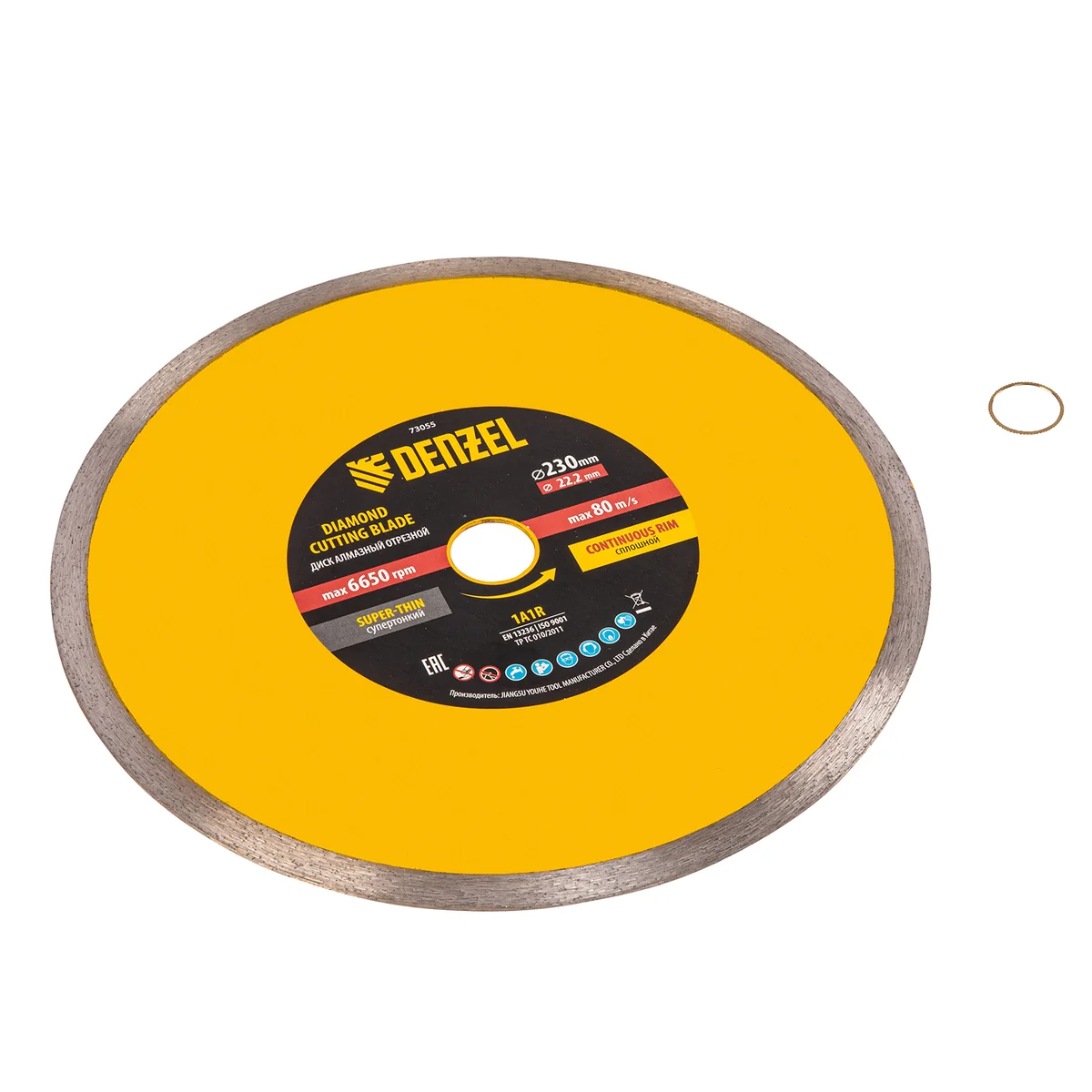 Алмазный диск ТМ Denzel "Сплошной" арт 73055, ф230 х 22,2 мм, предназначен для мокрого резания мрамора, керамогранита и керамическую плитки, камня. Устанавливается на УШМ (болгарку) или плиткорез с посадочным диаметром 22,2 мм. Высокая концентрация алмазов и супертонкая рабочая часть диска обеспечивает идеальную частоту кромок и высокую скорость реза.Диск произведен по технологии горячего прессования с увеличенной шириной режущей кромки (10мм) подходит для профессионального использования и больших объемов работ.