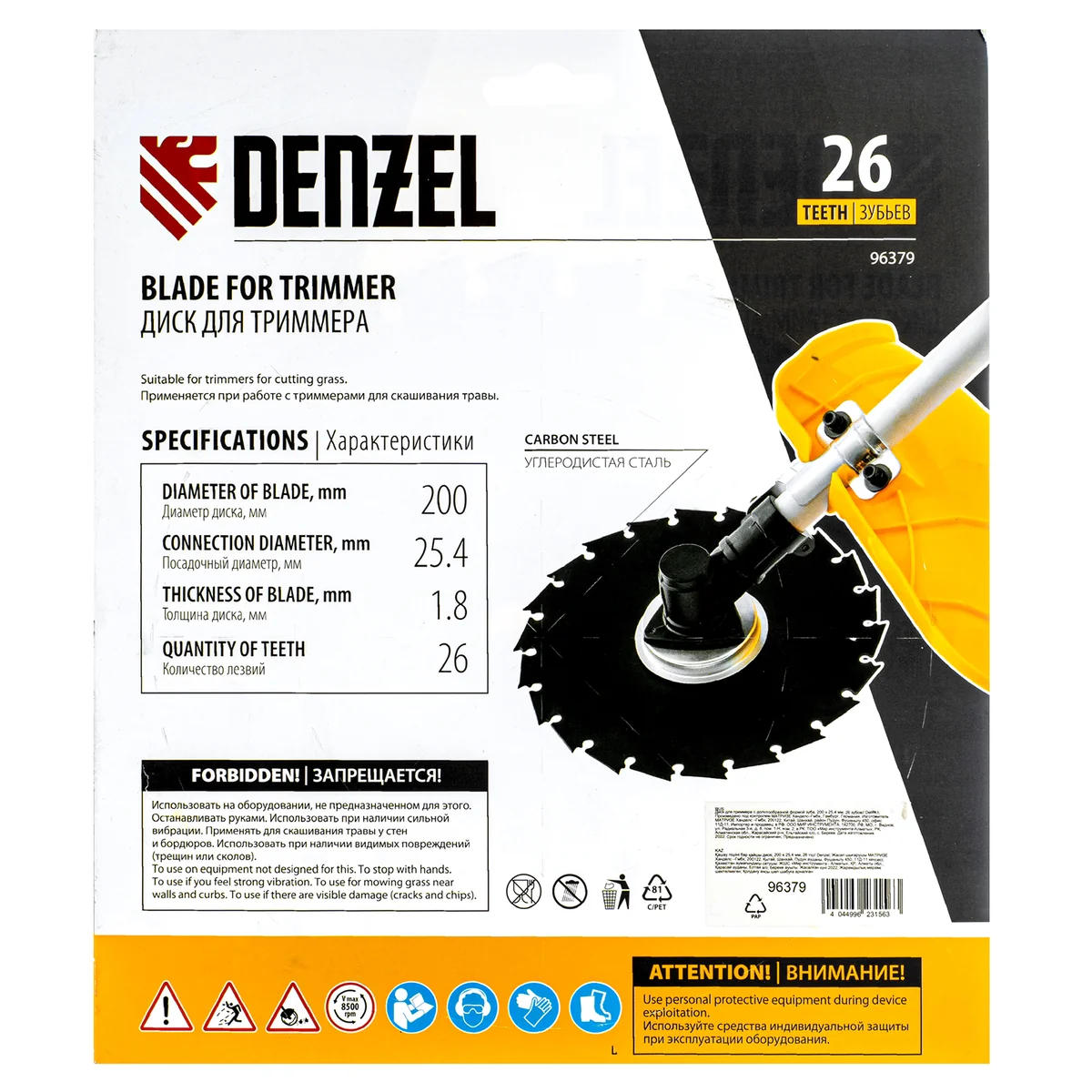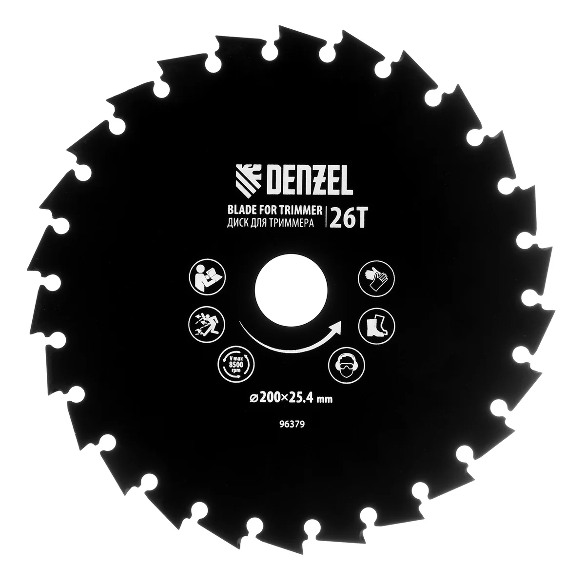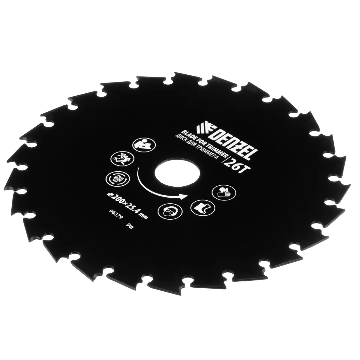 Диск для триммера Denzel 96379 с внешним диаметром 200 мм и посадочным — 25,4 мм, с 26 зубьями долотообразной формы, предназначен для скашивания травы и мелкого кустарника. Устанавливается на вал триммера с бензиновым двигателем. Диск пригодится для ухода за дачным участком.ПреимуществаУстойчивость к высоким динамическим нагрузкам — диск выполнен из прочной углеродистой стали толщиной 1,8 мм.Агрессивная форма зубьев — благодаря уникальной форме режущей кромки зуба диск особенно эффективен при срезании побегов кустарника и молодых деревьев.Эффективная расчистка территории — острые зубья быстро срезают растительность.