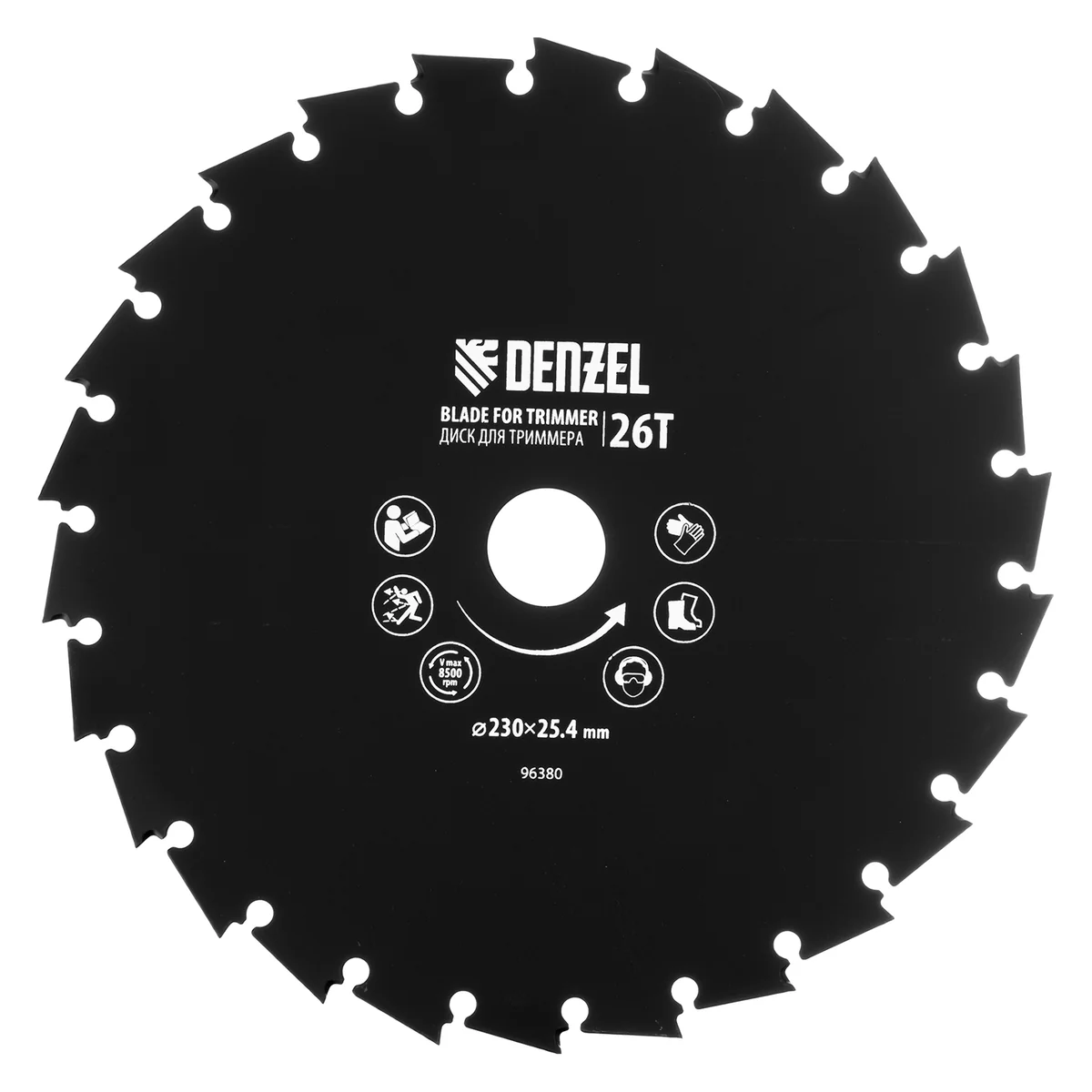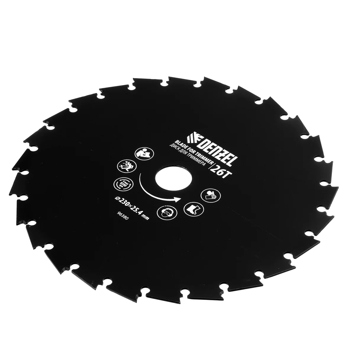Диск для триммера Denzel 96380 с внешним диаметром 230 мм и посадочным — 25,4 мм, с 26 зубьями долотообразной формы, предназначен для скашивания травы и мелкого кустарника. Устанавливается на вал триммера с бензиновым двигателем. Диск пригодится для ухода за дачным участком.ПреимуществаУстойчивость к высоким динамическим нагрузкам — диск выполнен из прочной углеродистой стали толщиной 1,8 мм.Агрессивная форма зубьев — благодаря уникальной форме режущей кромки зуба диск особенно эффективен при срезании побегов кустарника и молодых деревьев.Эффективная расчистка территории — острые зубья быстро срезают растительность.