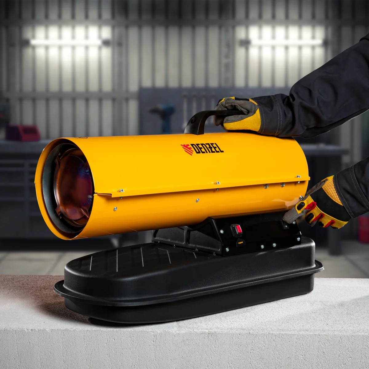 Дизельная тепловая пушка Denzel DHG-20 96482 мощностью 20 кВт и производительностью 500 куб. м/ч предназначена для прямого нагрева воздуха в цехах, ангарах, хранилищах и других нежилых помещениях с хорошей вентиляцией. Максимальная площадь обогрева составляет 200 кв. м. Пушка служит эффективным источником тепла в полярных экспедициях. Пригодится также на строительной площадке для прогрева бетона, просушки стен и разморозки траншей. Для заправки может использоваться любое дизельное топливо: летнее, зимнее и арктическое.Преимущества Встроенная система безопасности — подача топлива прекращается в случае затухания пламени, перегрева и отключения питания. Эффективность — благодаря системе прямого нагрева и теплоотражающему экрану воздух в помещении прогревается быстро и равномерно. Низкий расход топлива — продолжительность работы без дозаправки составляет 6 часов. Датчик уровня топлива — своевременная заправка бака позволяет избежать перерывы в работе. Защита от засорения — встроенный фильтр грубой очистки препятствует попаданию в топливную систему посторонних частиц. Подтвержденное качество — на устройство действует гарантия 3 года.