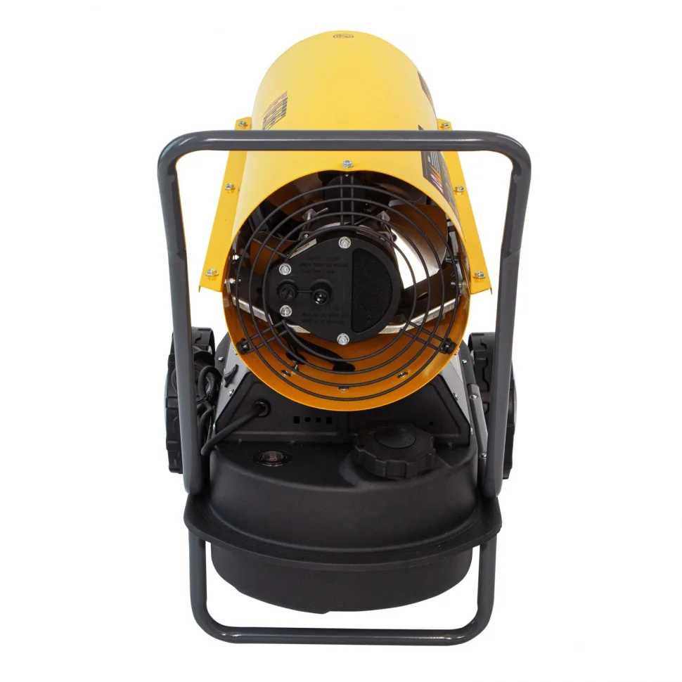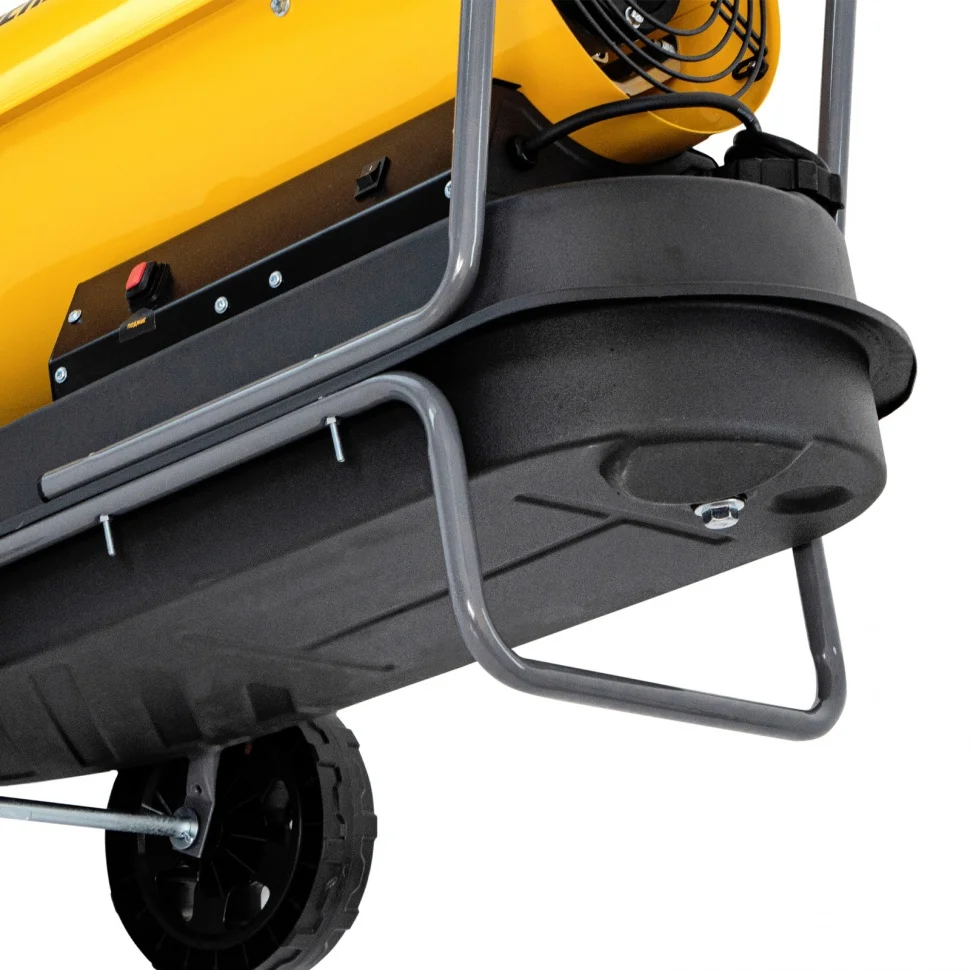 Дизельная тепловая пушка Denzel DHG-30 96484 мощностью 30 кВт и производительностью 750 куб. м/ч предназначена для прямого нагрева воздуха в цехах, ангарах, хранилищах и других нежилых помещениях с хорошей вентиляцией. Максимальная площадь обогрева составляет 300 кв. м. Пушка служит эффективным источником тепла в полярных экспедициях. Пригодится также на строительной площадке для прогрева бетона, просушки стен и разморозки траншей. Для заправки может использоваться любое дизельное топливо: летнее, зимнее и арктическое.Преимущества Встроенная система безопасности — подача топлива прекращается в случае затухания пламени, перегрева и отключения питания. Эффективность — благодаря системе прямого нагрева и теплоотражающему экрану воздух в помещении прогревается быстро и равномерно. Низкий расход топлива — продолжительность работы без дозаправки составляет 7 часов. Датчик уровня топлива — своевременная заправка бака позволяет избежать перерывы в работе. Защита от засорения — встроенный фильтр грубой очистки препятствует попаданию в топливную систему посторонних частиц. Продуманная конструкция — специальная опора обеспечивает устойчивость пушки во время работы. Удобство транспортировки — тепловая пушка оснащена ручкой и 2 колесами. Подтвержденное качество — на устройство действует гарантия 3 года.