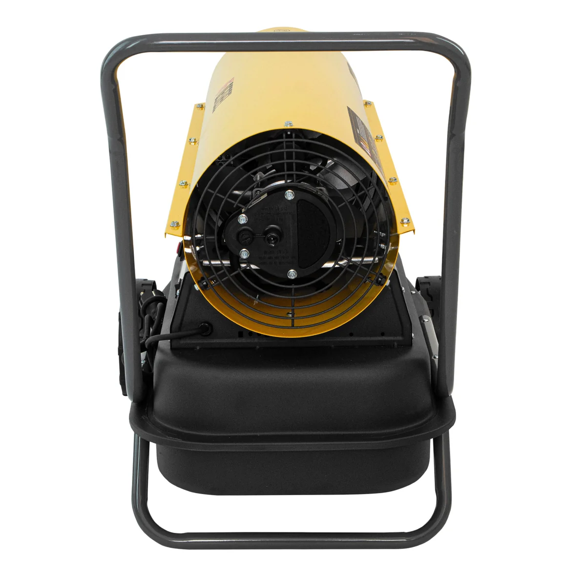 Дизельная тепловая пушка Denzel DHG-50 96486 мощностью 50 кВт и производительностью 1100 куб. м/ч предназначена для прямого нагрева воздуха в цехах, ангарах, хранилищах и других нежилых помещениях с хорошей вентиляцией. Максимальная площадь обогрева составляет 500 кв. м. Пушка служит эффективным источником тепла в полярных экспедициях. Пригодится также на строительной площадке для прогрева бетона, просушки стен и разморозки траншей. Для заправки может использоваться любое дизельное топливо: летнее, зимнее и арктическое.ПреимуществаВстроенная система безопасности — подача топлива прекращается в случае затухания пламени, перегрева и отключения питания.Эффективность — благодаря системе прямого нагрева и теплоотражающему экрану воздух в помещении прогревается быстро и равномерно.Низкий расход топлива — продолжительность работы без дозаправки составляет 9 часов.Датчик уровня топлива — своевременная заправка бака позволяет избежать перерывы в работе.Защита от засорения — встроенный фильтр грубой очистки препятствует попаданию в топливную систему посторонних частиц.Продуманная конструкция — специальная опора обеспечивает устойчивость пушки во время работы.Удобство транспортировки — тепловая пушка оснащена ручкой и 2 колесами.Подтвержденное качество — на устройство действует гарантия 3 года.