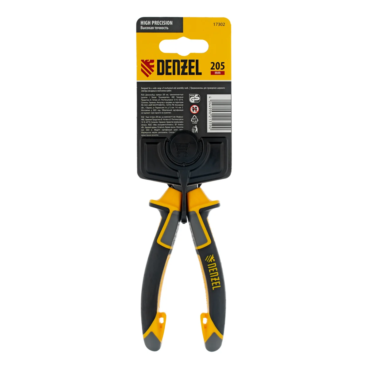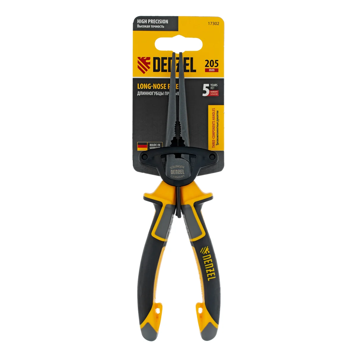 Длинногубцы прямые 205 мм, трехкомпонентные рукоятки Denzel 17302