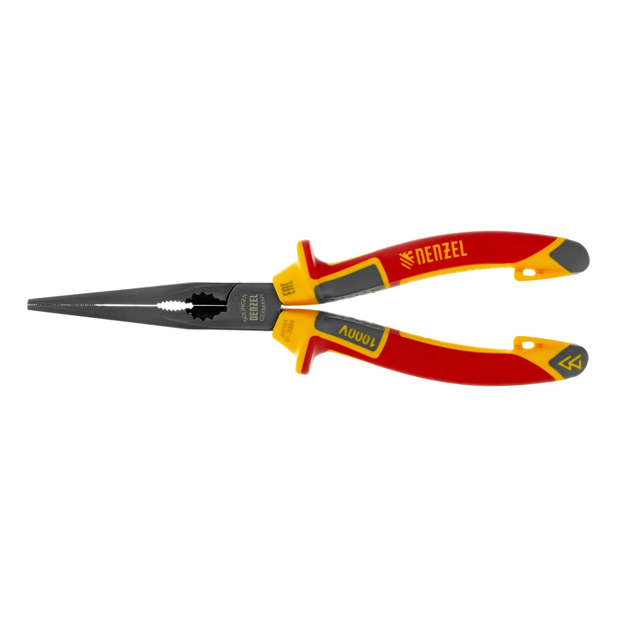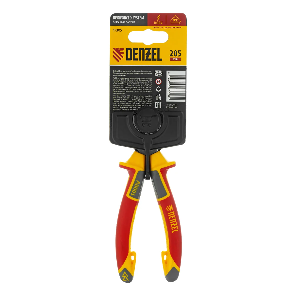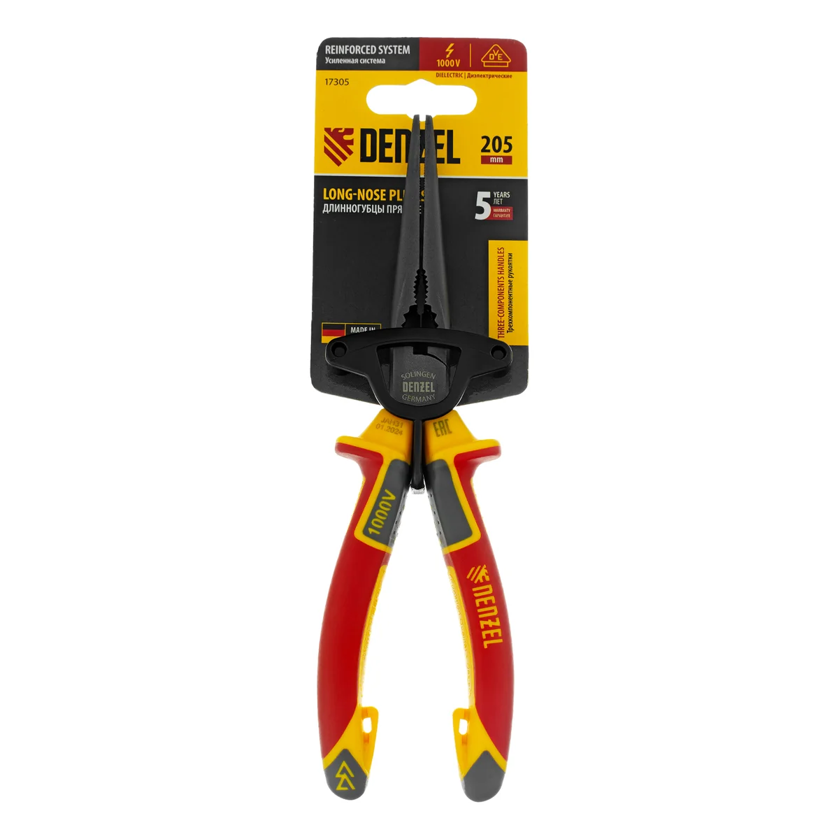 Длинногубцы прямые, диэлектрические рукоятки до 1000 В, трехкомпонентные рукоятки, 205мм Denzel 17305