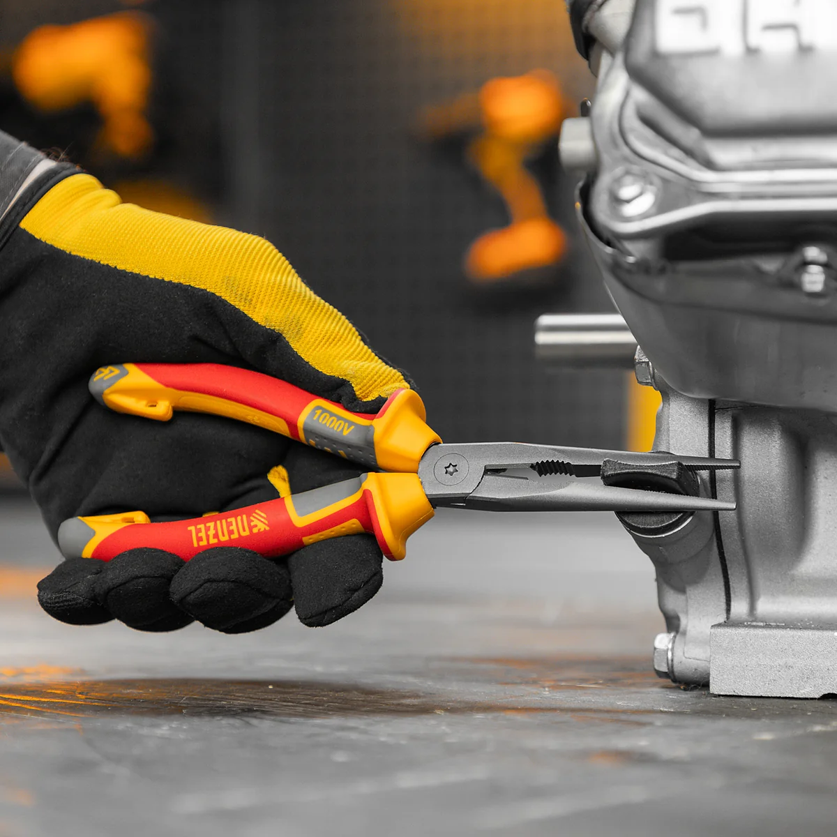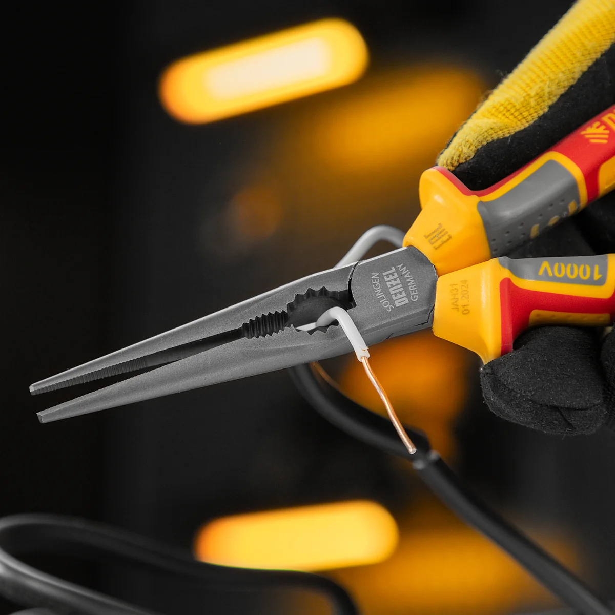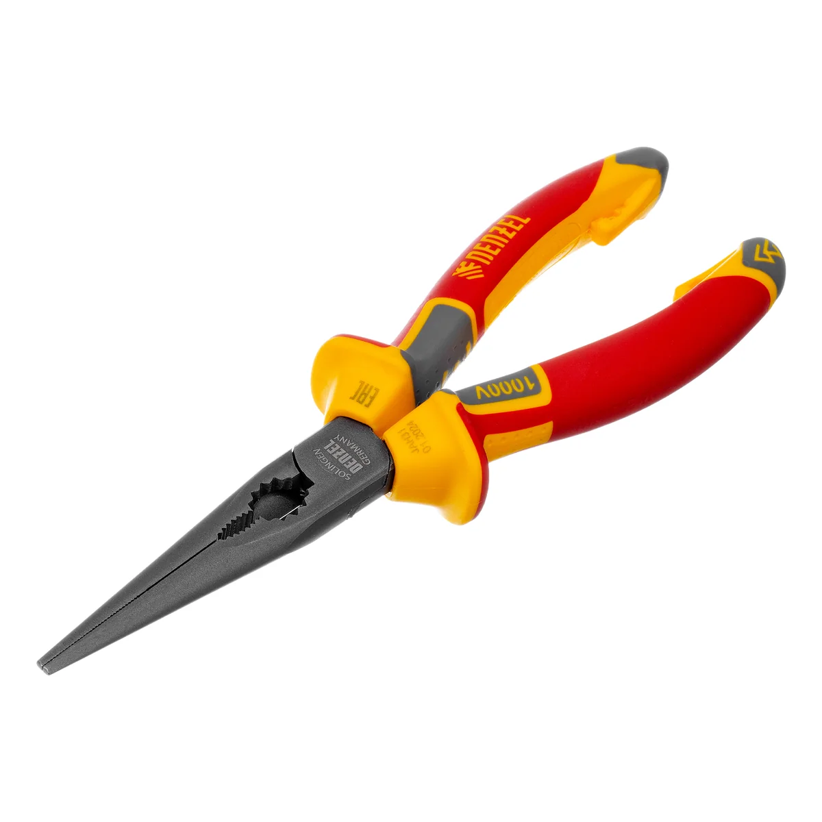 Длинногубцы прямые, диэлектрические рукоятки до 1000 В, трехкомпонентные рукоятки, 205мм Denzel 17305