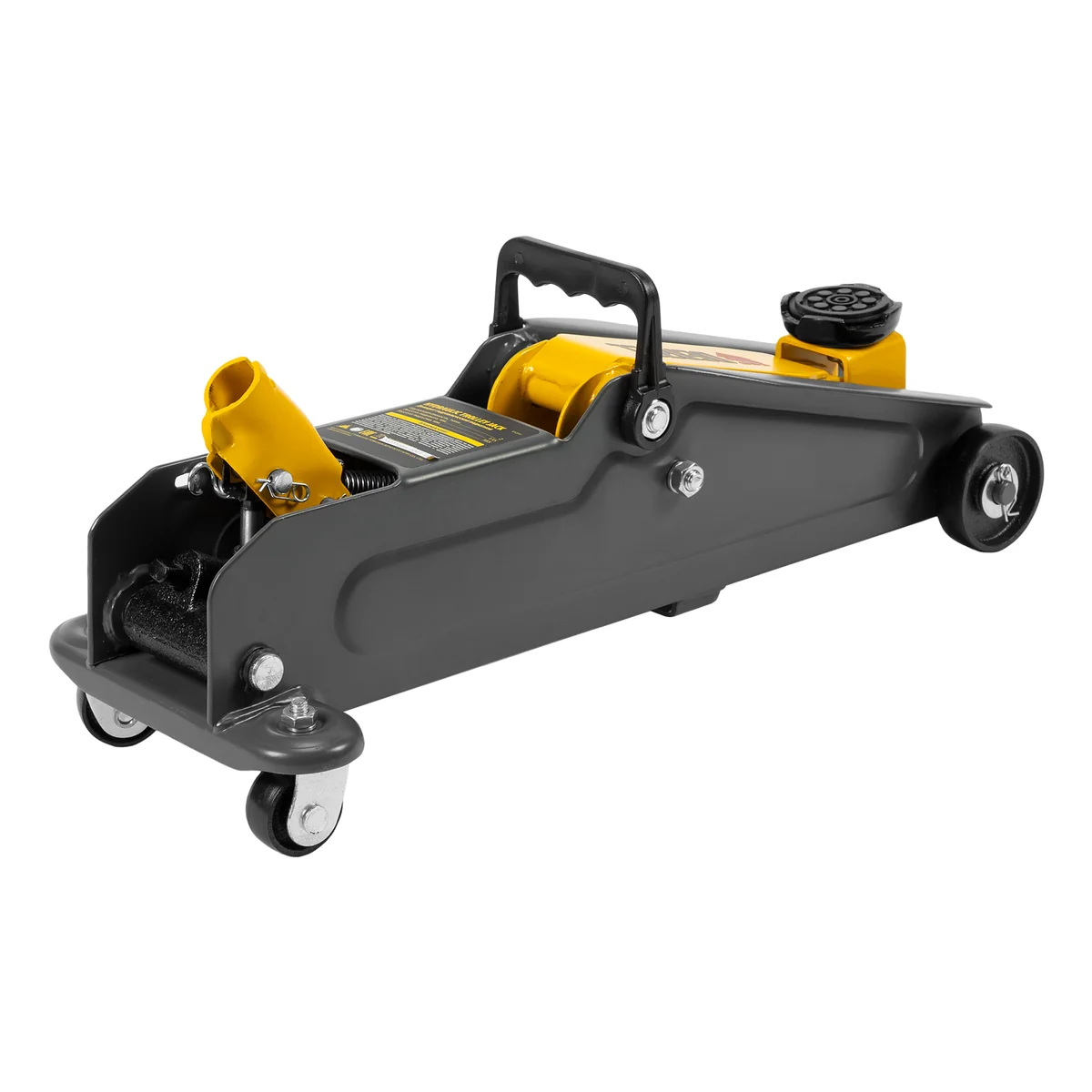 Гидравлический подкатной домкрат Denzel 51230 с высотой подхвата 135 мм предназначен для плавного подъема грузов массой до 2 т на высоту до 385 мм. Домкрат пригодится владельцам легковых автомобилей со стандартным клиренсом.