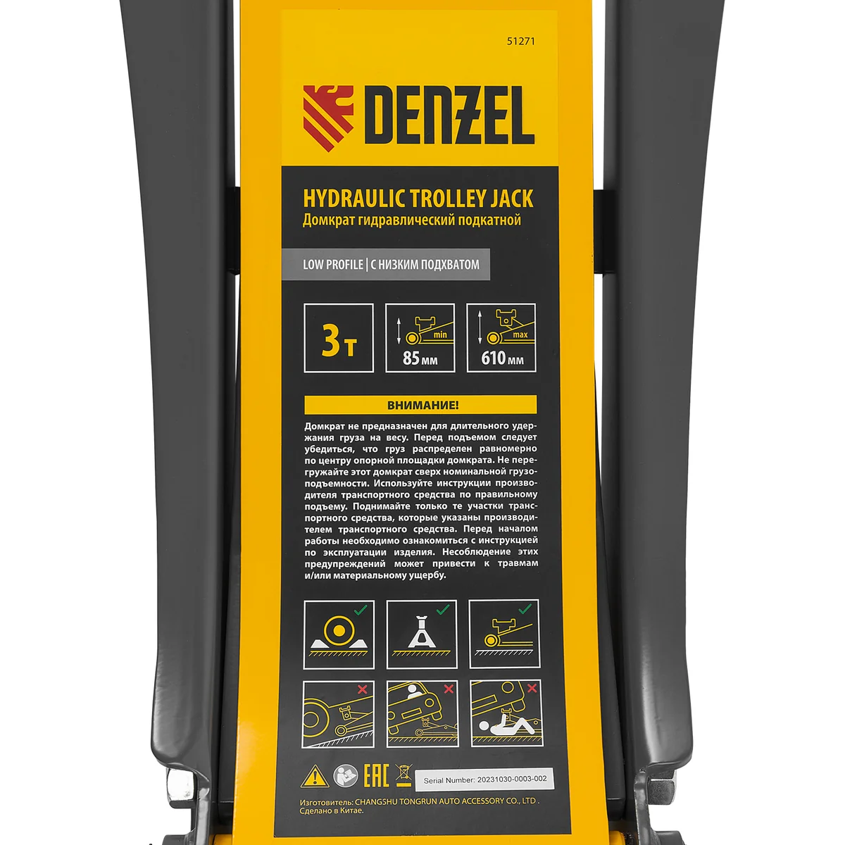 Профессиональный подкатной гидравлический домкрат Denzel 51271 с низким подхватом используется для быстрого подъема на высоту 85-610 мм всех типов автомобилей с любым клиренсом и массой до 3 т, в том числе SUV. В гидравлическом блоке предусмотрено 2 насоса (система быстрого подъема QUICK LIFT), благодаря чему для достижения предельной высоты достаточно 6 качков рукоятки. Домкрат подходит для использования на станциях техобслуживания и шиномонтажа.