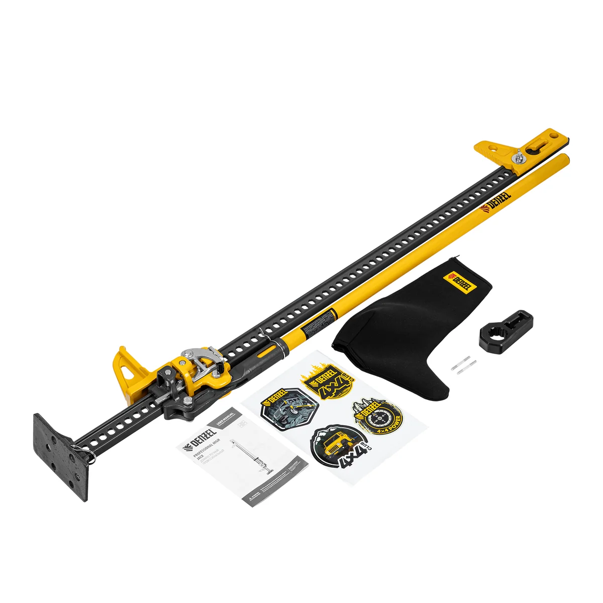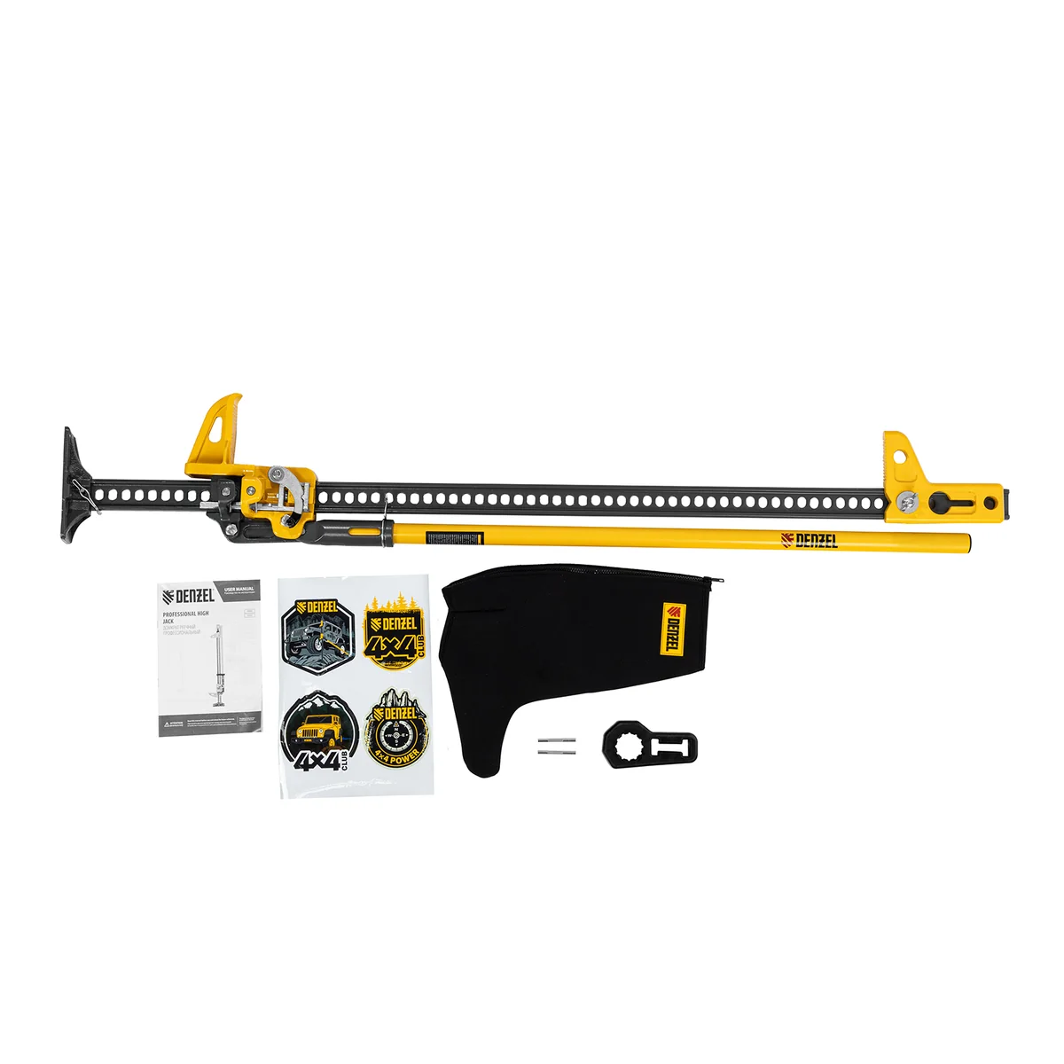 - Богатая комплектация — в комплект поставки входят поперечные штифты (2 штуки) и держатель рукоятки домкрата, а также неопреновый чехол для защиты механизмов от попадания пыли и влаги при транспортировке и хранении.