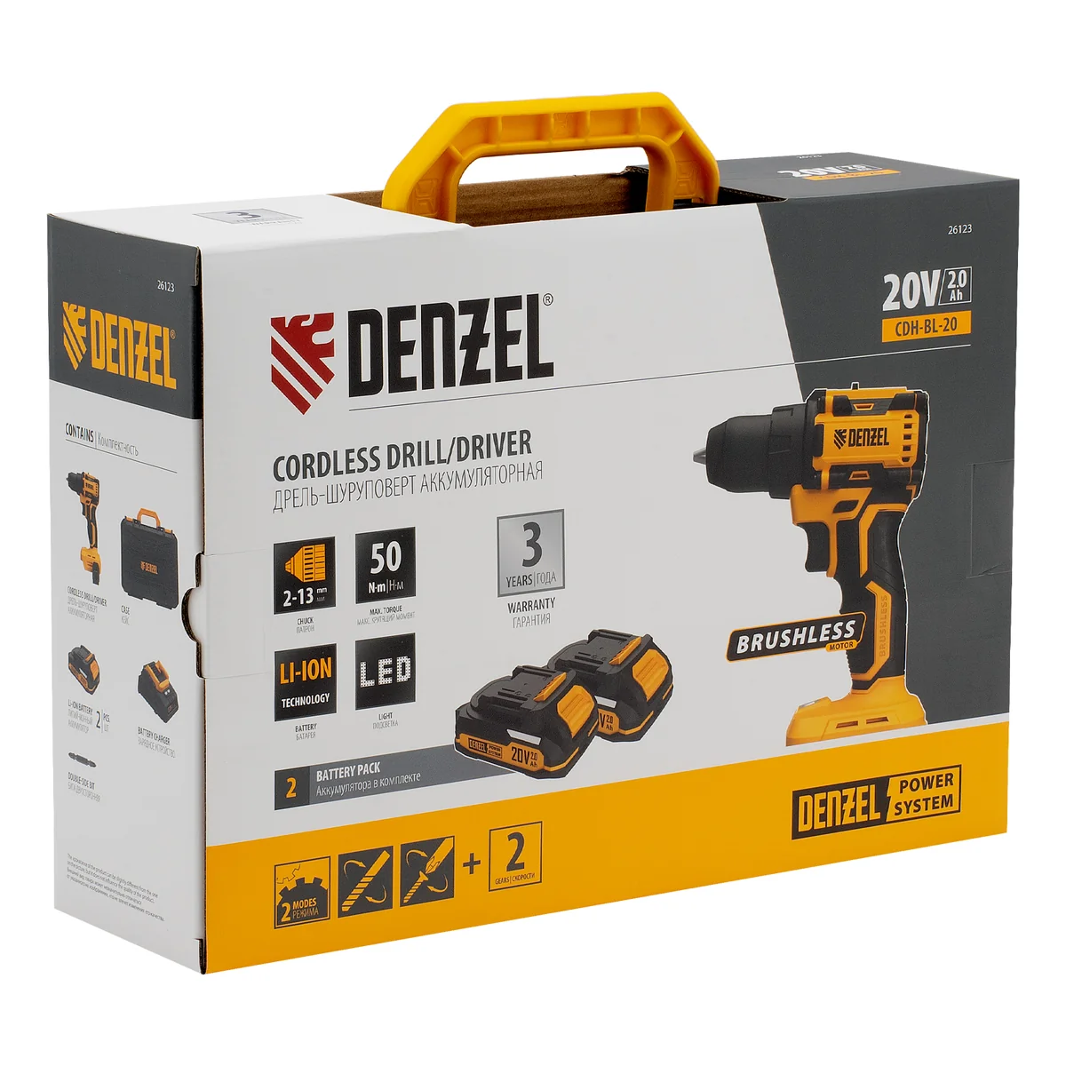 Дрель-шуруповерт аккумуляторная бесщет. CDH-BL-20, Li-Ion, 20 В Denzel 26123