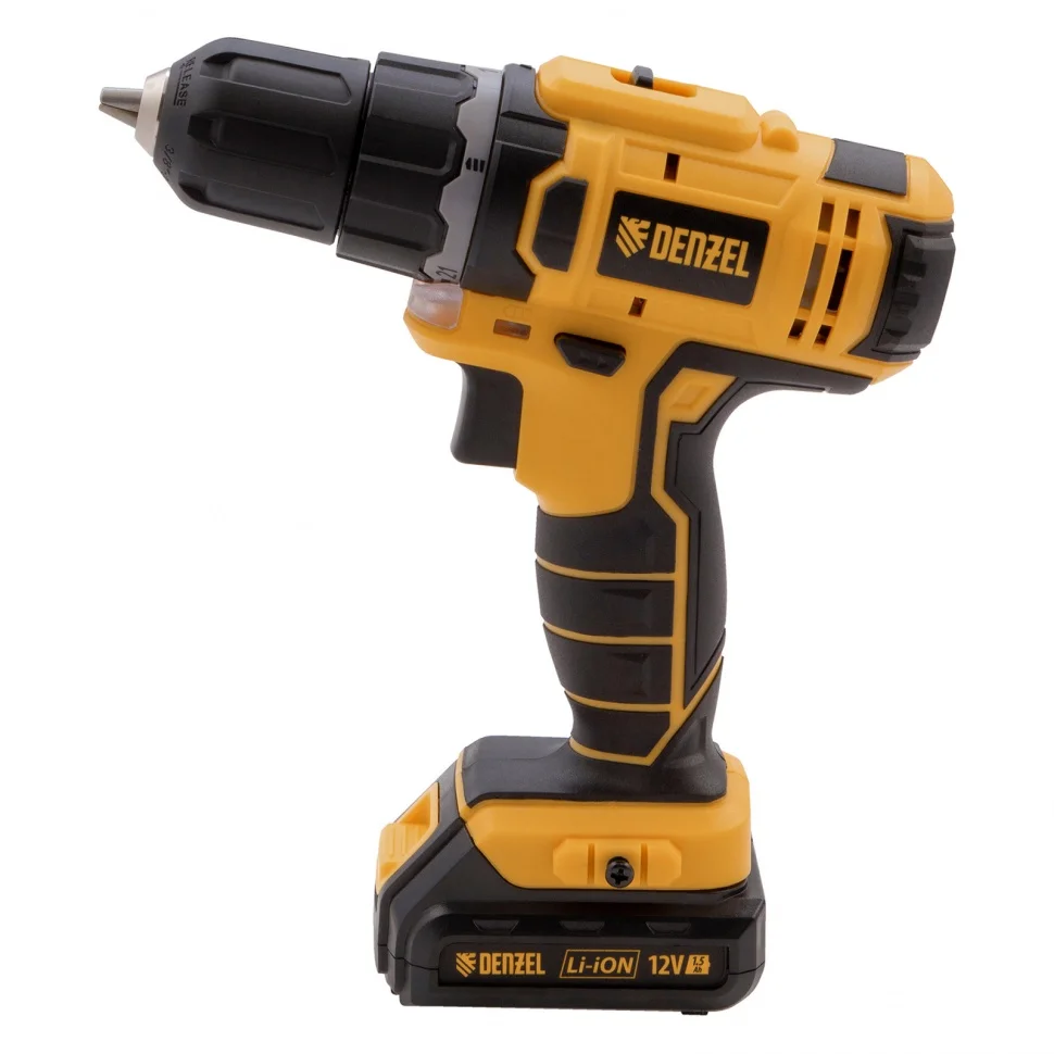 Дрель-шуруповерт аккумуляторная CDL-12-02, Li-Ion, 12 В, 1.5 А*ч, 2 аккумулятора Denzel 26101