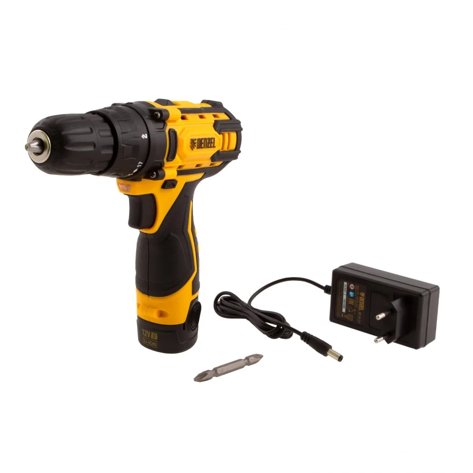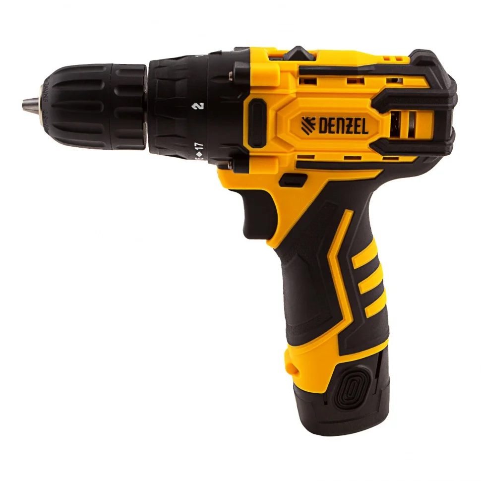 Аккумуляторная дрель-шуруповерт Denzel CDL-12CB 26102 с батареей Li-Ion 12 В предназначена для монтажа и демонтажа резьбовых соединений, сверления отверстий в металле (до 10 мм), древесине (до 16 мм), пластмассе и других материалах. Инструмент пригодится профессионалам и любителям на строительной площадке, дома или на даче.Надежный литий-ионный аккумулятор без эффекта памяти обеспечивает долгий срок службы инструмента. Дрель не зависит от сети питания, что делает удобной работу на строительных объектах, на высоте и в отдаленных участках дома.Преимущества17+1 ступень регулировки крутящего момента — вы с легкостью подберете оптимальное усилие затяжки под тип крепежа.Два режима вращения — можно настроить скорость в диапазоне 0-400 или 0-1450 об/мин для работы с резьбовыми крепежами и сверления отверстий.Мгновенное переключение между задачами — реверс позволяет быстро перейти от монтажа к демонтажу крепежных элементов.Подсветка рабочей зоны — решать поставленные задачи удобно даже в условиях плохой освещенности и в труднодоступных местах.Защита от перетягивания крепежа — благодаря тормозу выбега шпиндель моментально останавливается после выключения.Высокий ресурс — корпус из ударопрочного пластика и металлические шестерни редуктора обеспечивают долгий срок службы инструмента.Быстрая и безопасная зарядка — на восстановление работоспособности аккумулятора требуется всего 1 час.Индикация уровня заряда — можно вовремя зарядить батарею, избежав перерывов да.Комфортная эксплуатация — прорезиненная рукоятка обеспечивает надежный хват и поглощает вибрации, снижая нагрузку на руки мастера.Готовность к работе — зарядное устройство и аккумулятор входят в комплект поставки.Гарантия 3 года — качество инструмента подтверждено производителем.