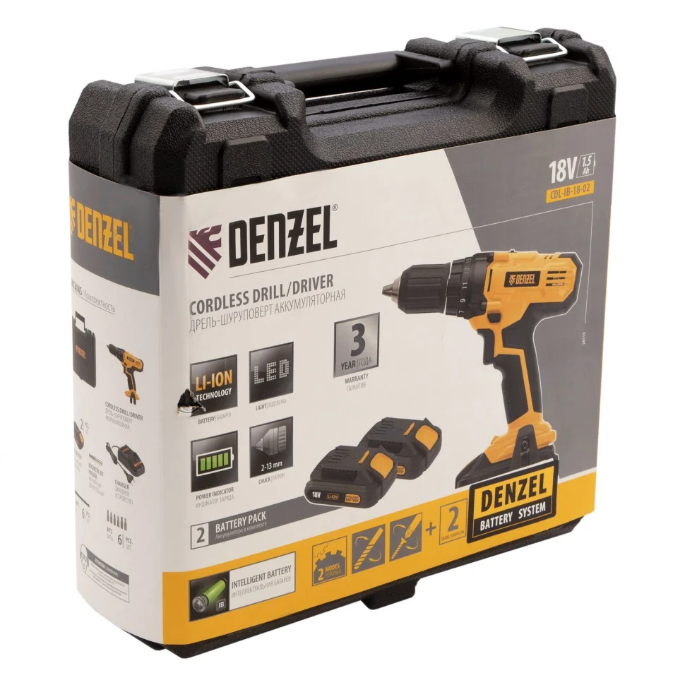 Дрель-шуруповерт аккумуляторная CDL-IB-18-02, Li-Ion, 18 В, 2 акк. Denzel 26113