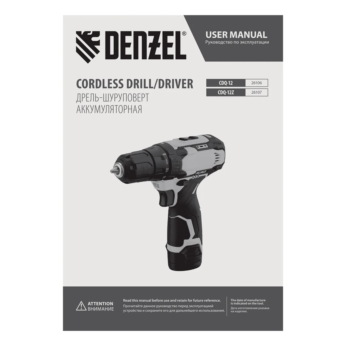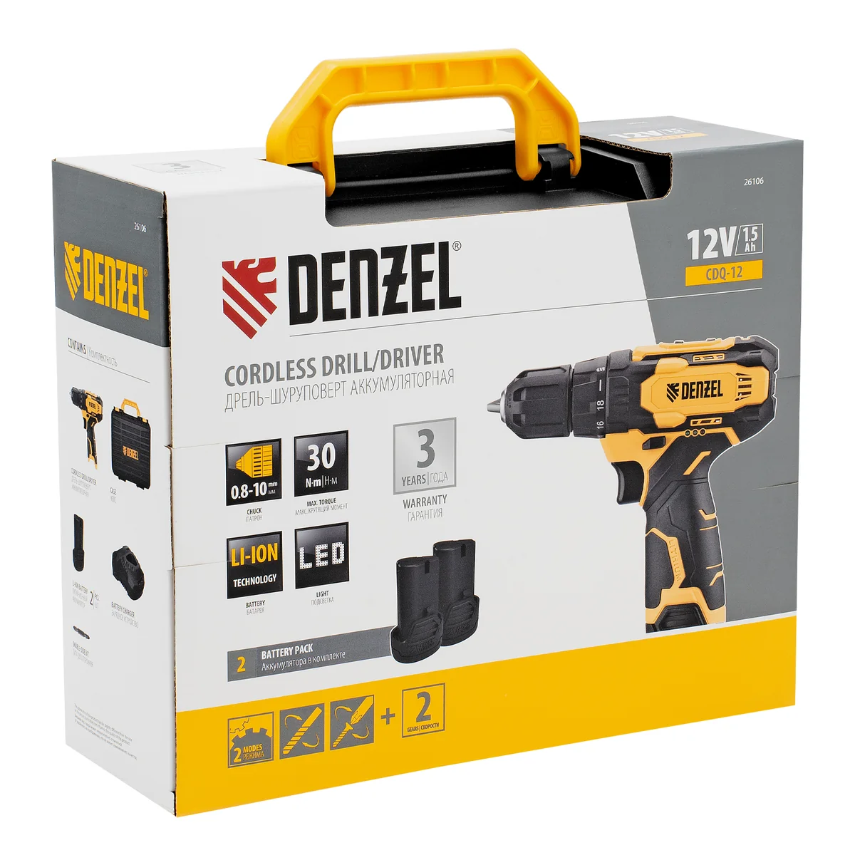 Дрель-шуруповерт аккумуляторная CDQ-12, Li-Ion, 12 В Denzel 26106