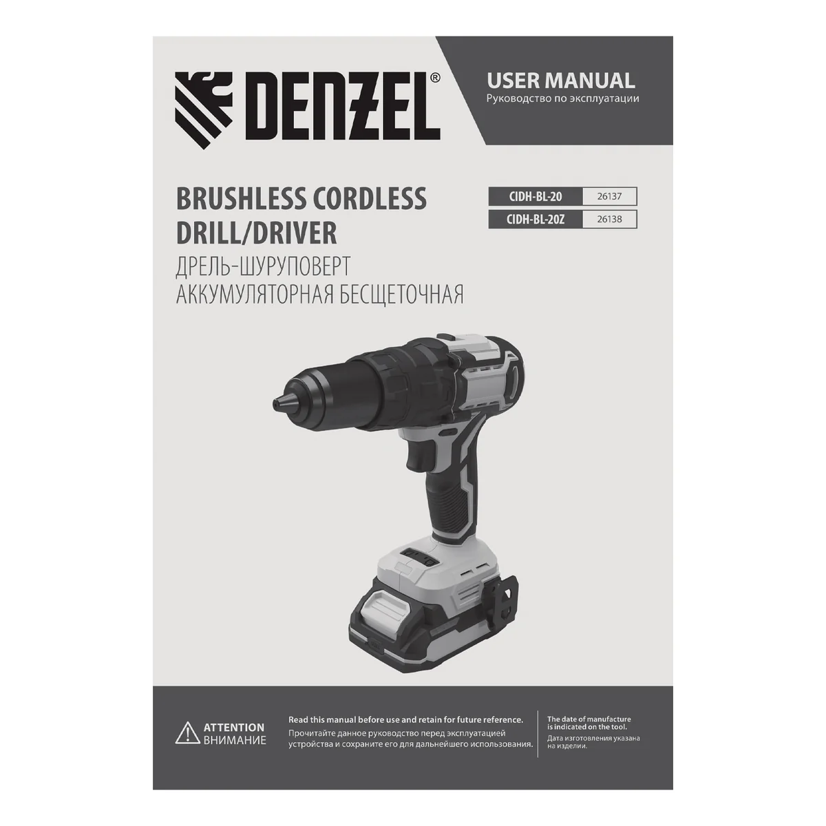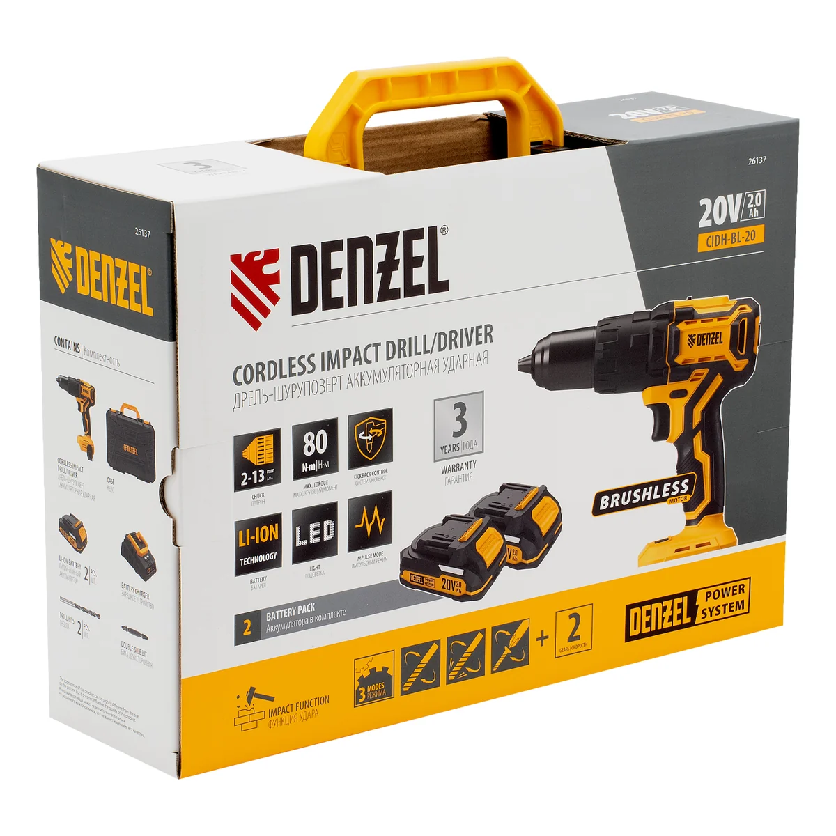 Дрель-шуруповерт аккумуляторная ударная бесщет. CIDH-BL-20, Li-Ion, 20 В Denzel 26137