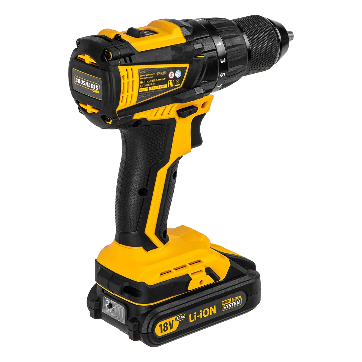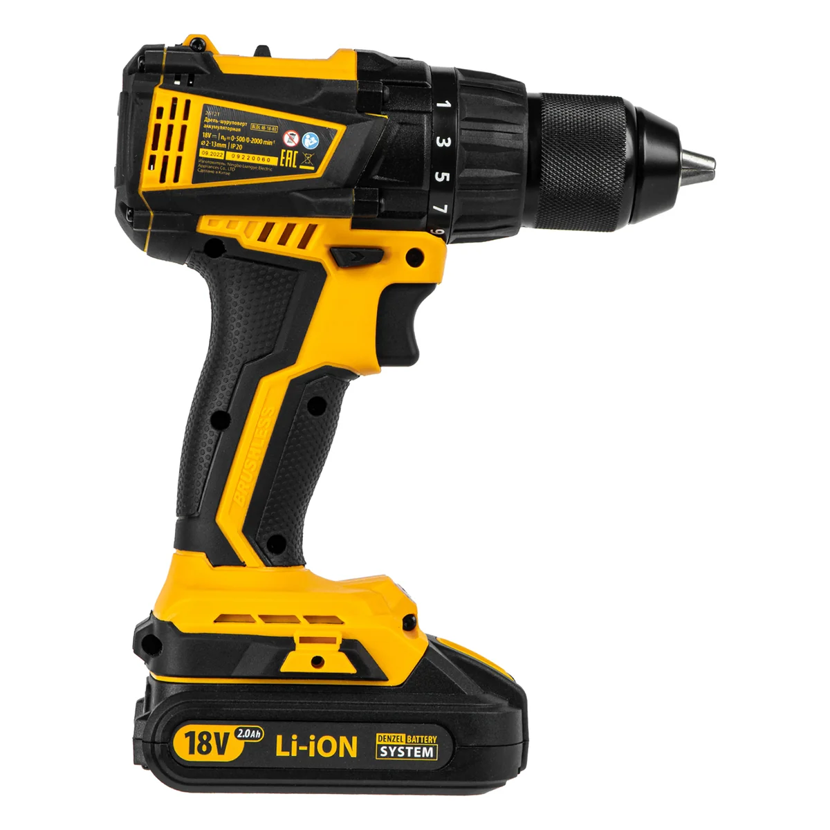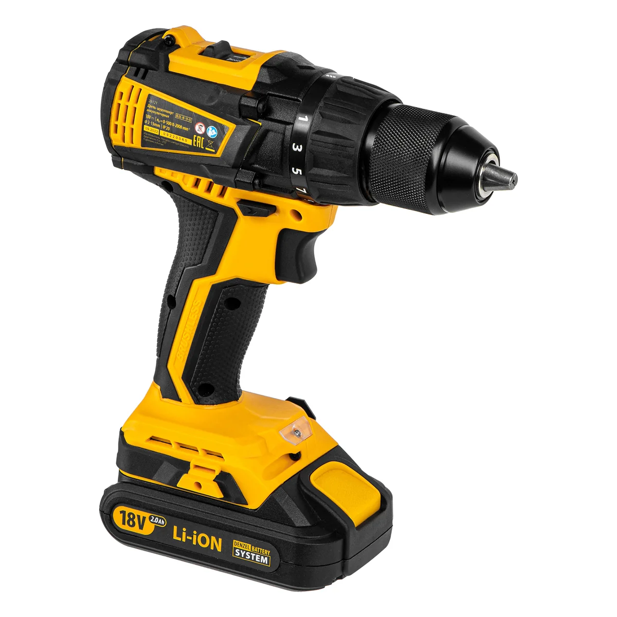 Дрель-шуруповерт аккумуляторная, бесщет. BLDL-IB-18-02, Li-Ion, 18 В, 2 акк Denzel 26121