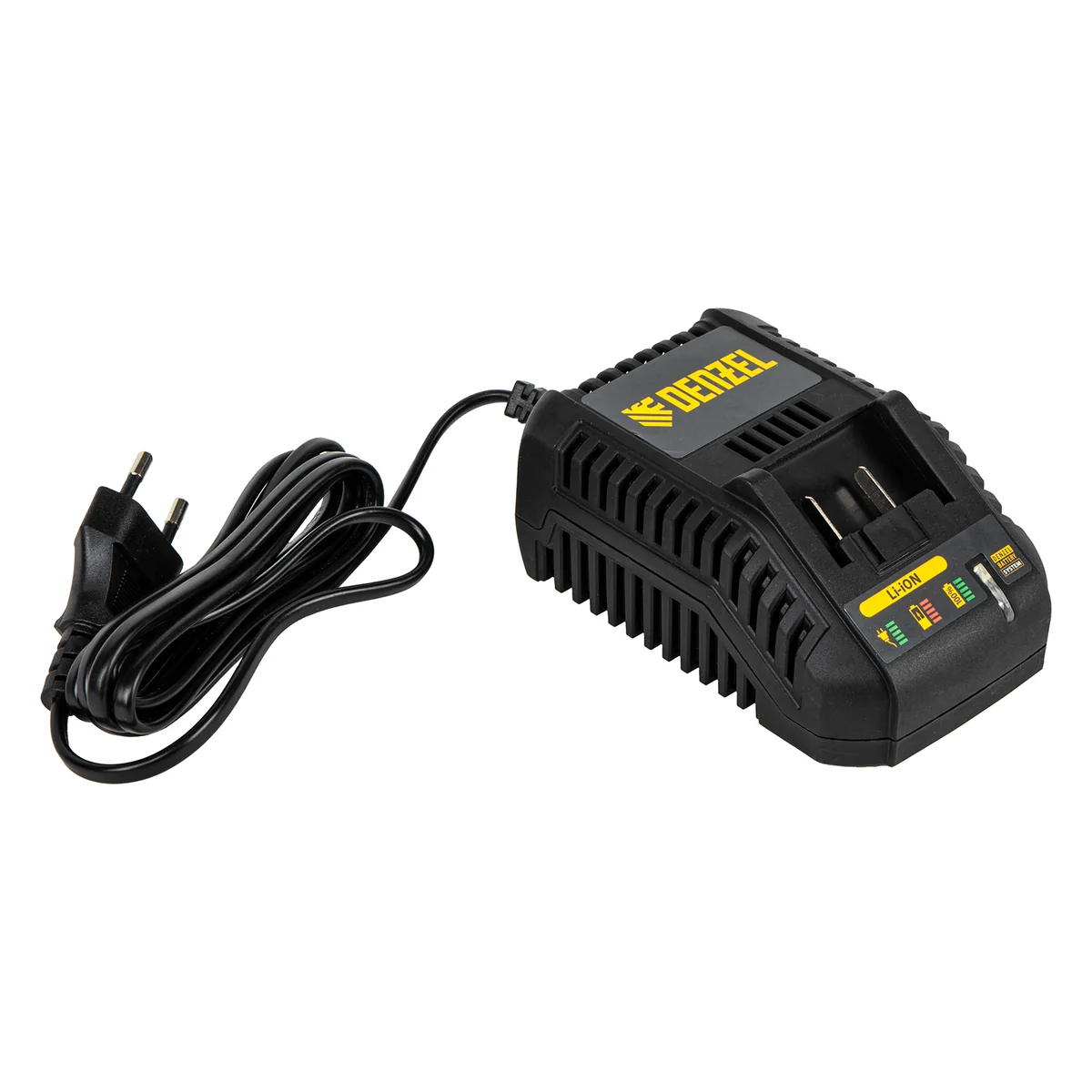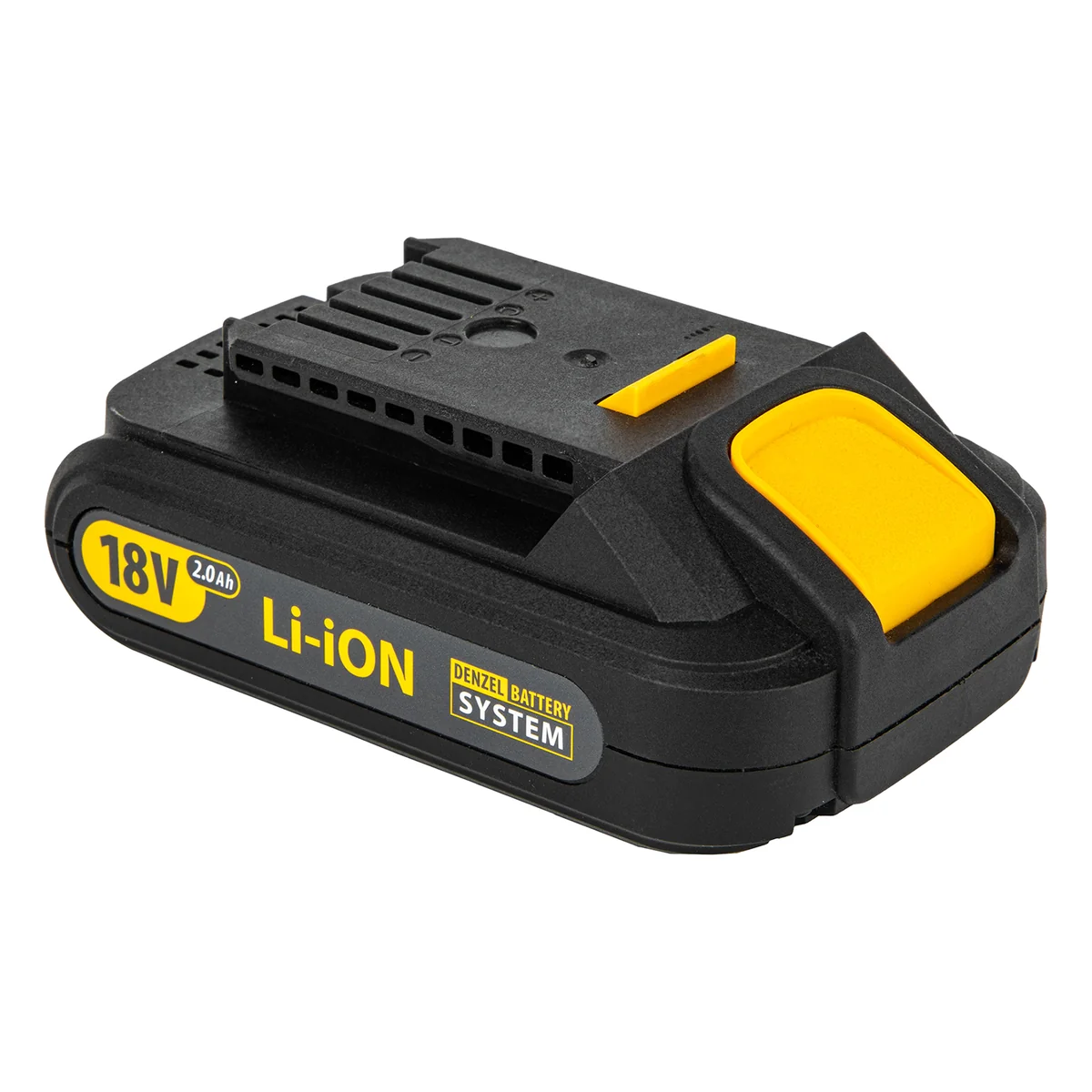 - Универсальность — аккумуляторы 2 Ач Li-ion с интеллектуальной системой распознавания нагрузки совместимы с любым инструментом 18V Denzel battery system.