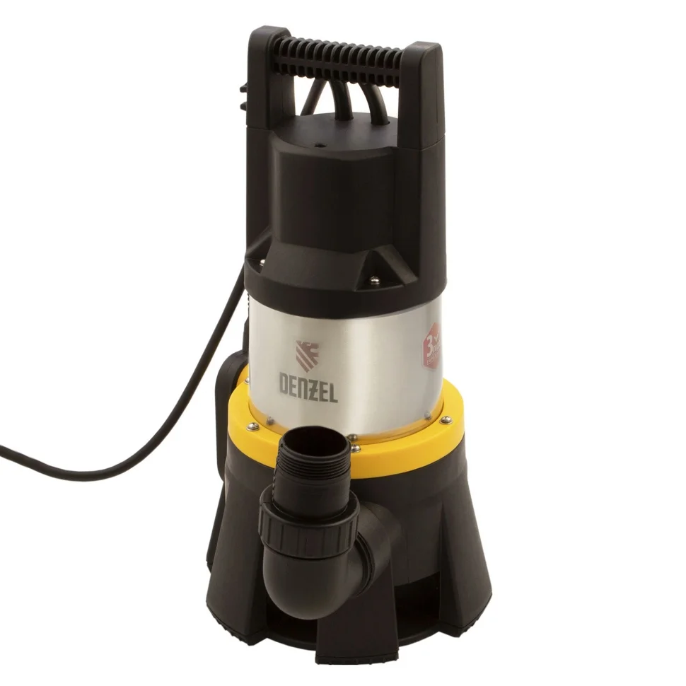 Дренажный насос Denzel DP1400X 97228 — мощная модель с усиленным импеллером, потребляющая 1400 Вт и обеспечивающая подъем 11 м и производительность 25000 л/ч. Устанавливается в вертикальном положении с помощью троса, позволяет создать эффективную систему водоснабжения или орошения. Также насос способен откачивать сильно загрязненную воду с твердыми включениями размером до 40 мм.ПреимуществаВысокий ресурс — вал и корпус изготовлены из нержавеющей стали, торцевое уплотнение — из карбида кремния.Быстрая подготовка к работе — универсальный патрубок на 2"" позволяет подключать шланг без переходника.Автономность — поплавковая система останавливает насос при падении уровня воды ниже допустимого.Устойчивость — благодаря расширенному основанию насос не опрокинется при низком уровне воды.Установка в глубоких/узких резервуарах и колодцах — насос имеет компактные размеры и может погружаться на глубину до 7 м.Надежность — тройное манжетное уплотнение вала предохраняет двигатель от попадания воды, насос имеет степень защиты IPX8.Комфортное использование — сетевой кабель длиной 10 м удобен для подключения к удаленной розетке, ручка на корпусе облегчает транспортировку и погружение.Гарантия 3 года — высокое качество насоса подтверждено производителем.
