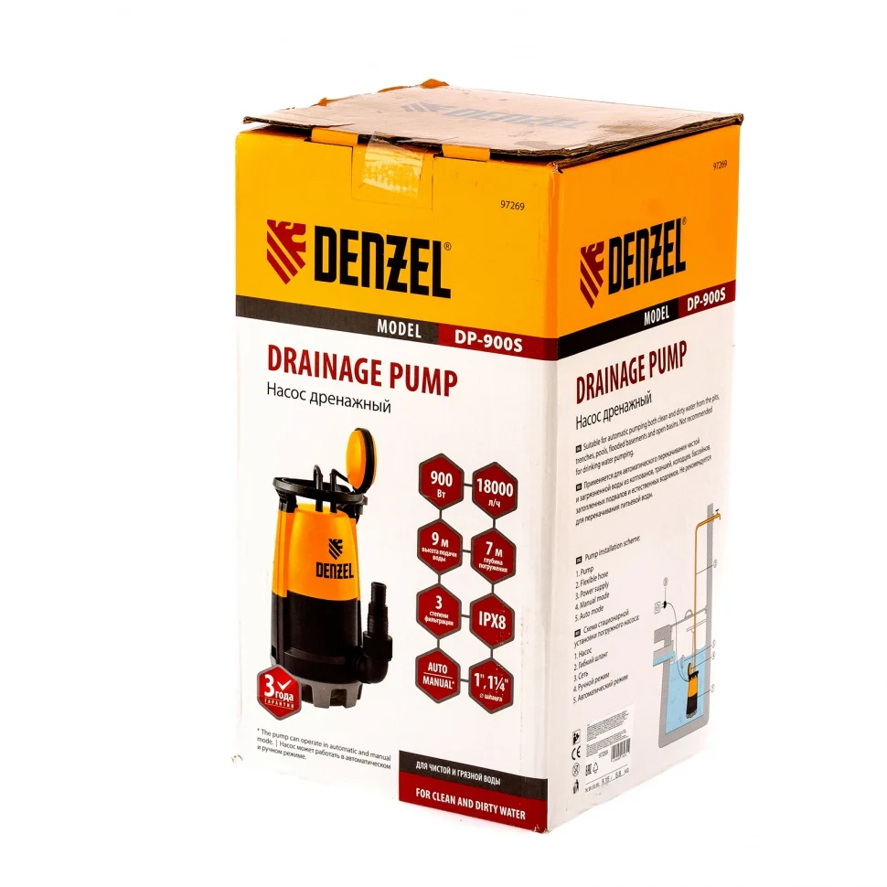 Дренажный насос для чистой и грязной воды DP900S, 900 Вт, напор 9 м, 18000 л/ч Denzel 97269