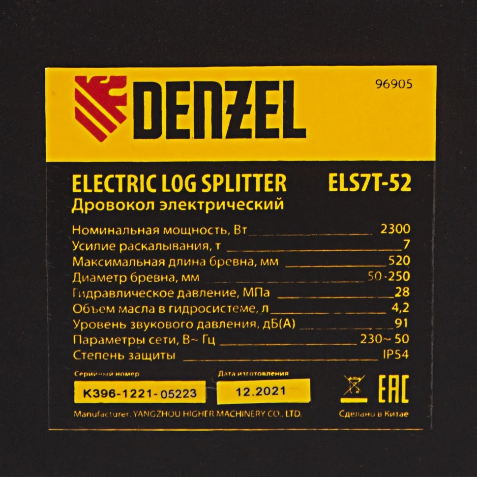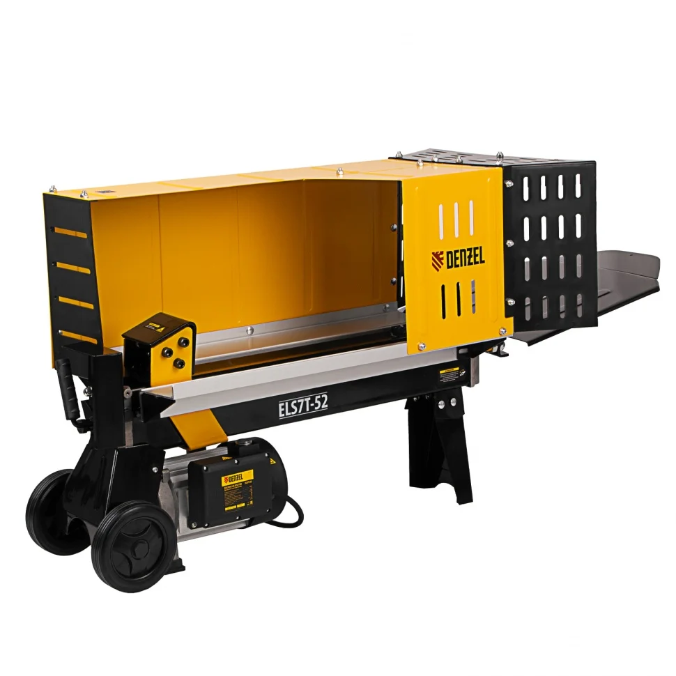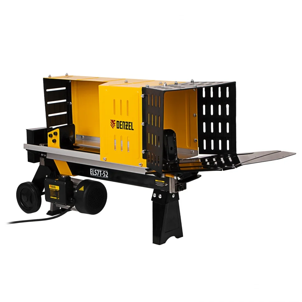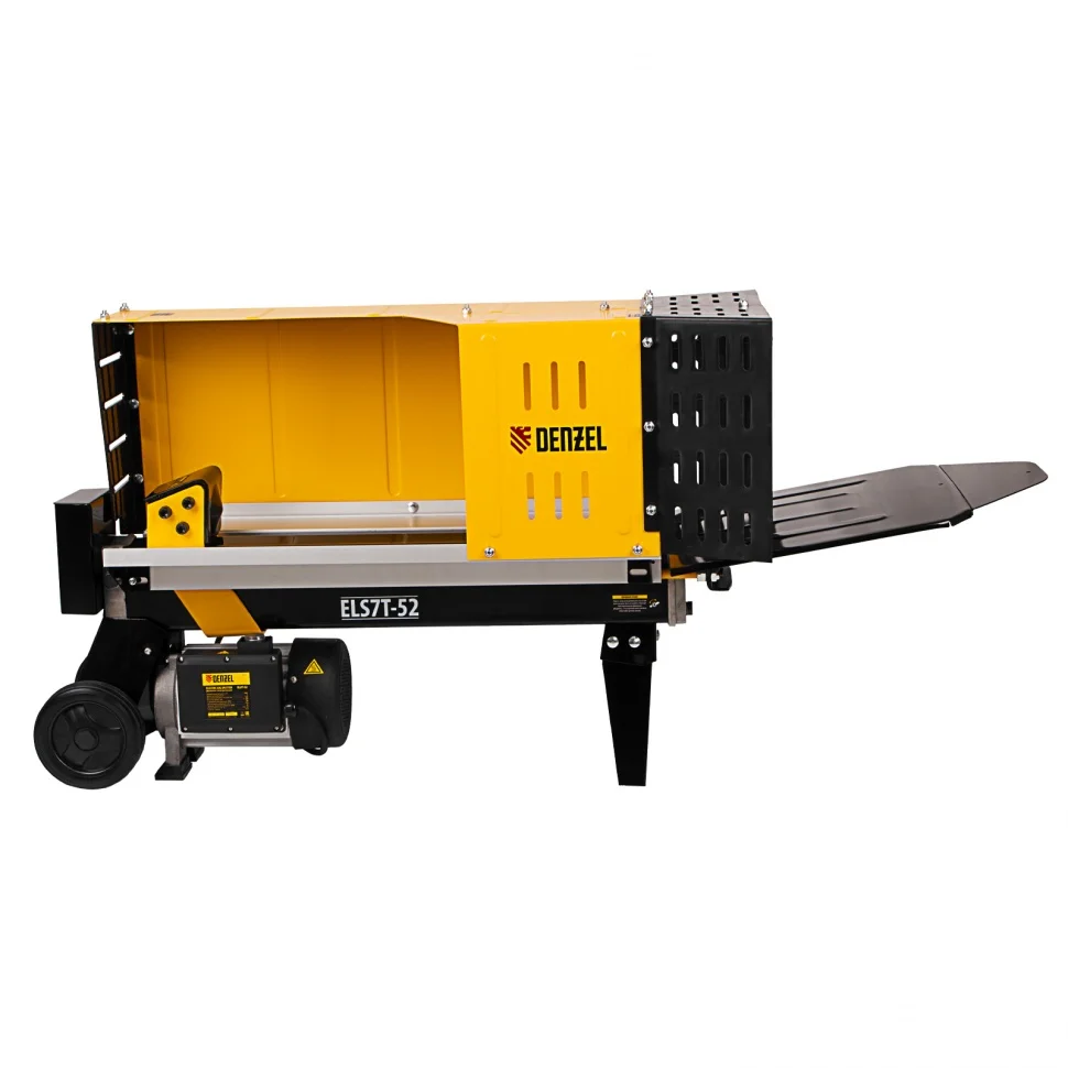 Электрический дровокол Denzel 96905 мощностью 2300 Вт значительно упрощает процесс раскалывания поленьев диаметром 50-250 мм и длиной до 520 мм. Заготовка дров производится быстро и не требует практически никаких усилий от мастера. Дровокол будет полезен владельцам бань и домов с печным отоплением/камином, любителям отдыха на природе, рыбакам и охотникам. Благодаря значительному усилию раскола 7 тонн устройство подходит для полупрофессионального применения, поэтому пригодится работникам коммунальных служб и дровяных котельных. Асинхронный электрический двигатель отличается высоким ресурсом и надежностью. Дровокол подключается к бытовой сети и не требует сложного технического обслуживания — достаточно включить его в розетку, и можно приступать к работе. Колоть дрова можно даже в закрытом помещении, ведь устройство не производит вредных выхлопов.Преимущества Безопасность — защитный кожух не допускает случайного контакта с распорным клином и предотвращает попадание на пользователя щепок. Двухрычажная система блокировки — для раскалывания дров нужно удерживать рычаг гидравлики и кнопку двумя руками, иначе устройство остановится — такое решение делает рабочий процесс нетравмоопасным. Горизонтальная загрузка — укладывать поленья в желоб дровокола удобно, также такой способ делает работу более безопасной, ведь руки мастера находятся вдали от ножа. Аккуратность — для расколотых дров в конструкции предусмотрена специальная подставка. Эффективная колка — клин выполнен из высококачественной стали, закален до необходимой твердости и остро заточен, поэтому легко справится с древесиной твердых пород. Долговечность — корпус изготовлен из прочной стали и покрыт порошковой краской для защиты от коррозии. Устойчивая конструкция — благодаря весу 56кг и опорам дровокол надежно фиксируется на ровной поверхности и не смещается в процессе работы. Мобильность — для удобного перемещения дровокола предусмотрены прочные колеса.