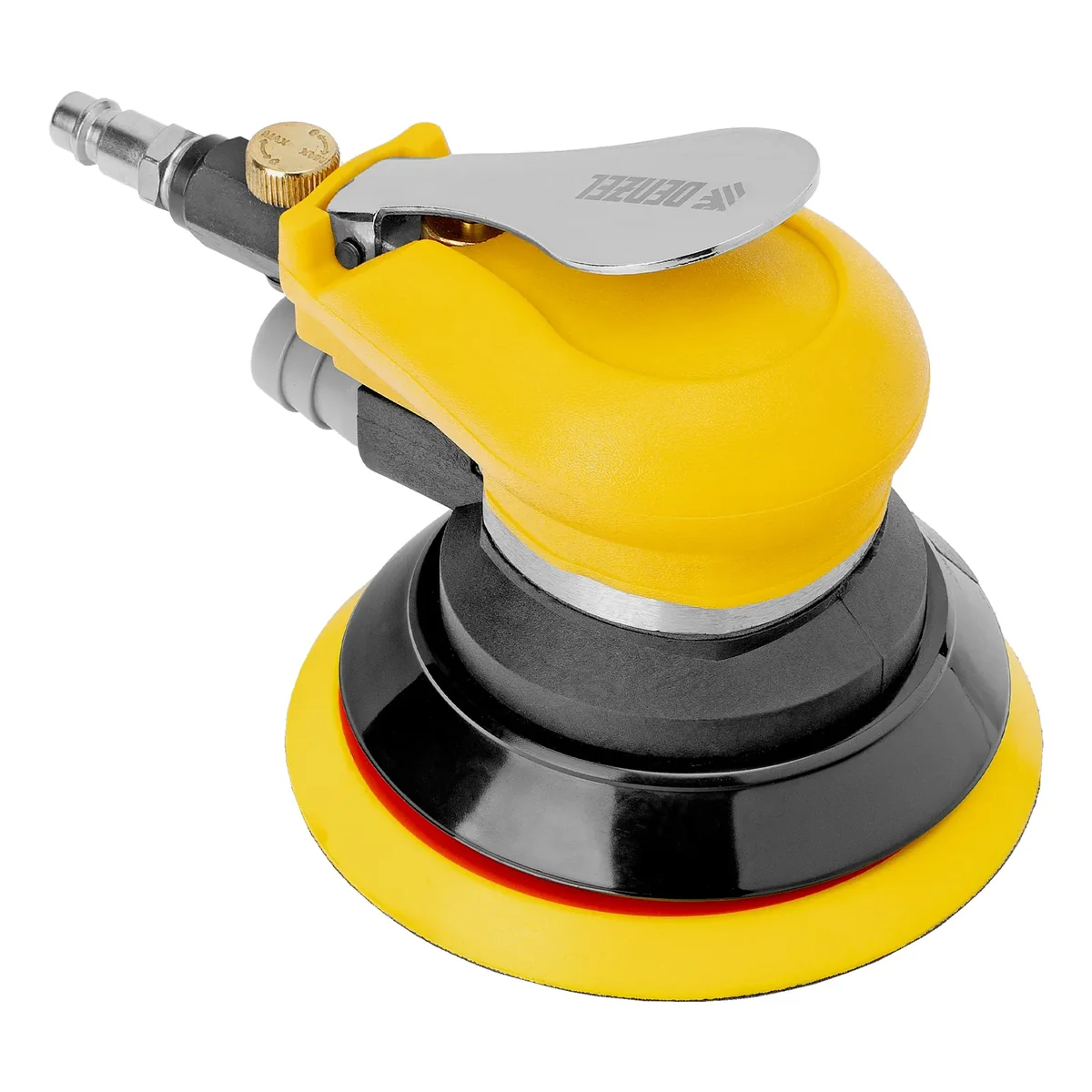Эксцентриковая шлифовальная машина Denzel EPG125 57492 с амплитудой колебаний 5 мм обеспечивает скорость вращения до 9000 об/мин при среднем расходе воздуха 113 л/мин и давлении 6,3 бар, что делает ее идеальным инструментом для шлифовки и обработки различных материалов. Диаметр подошвы составляет 125 мм, поэтому инструмент оптимален для выполнения работ в труднодоступных местах, а также для детальной обработки небольших поверхностей, что особенно важно при подготовке к покраске и отделке.
