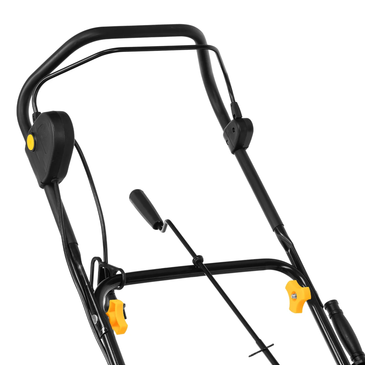 - Небольшой вес 17 кг — снегоуборочную машину легко перемещать.