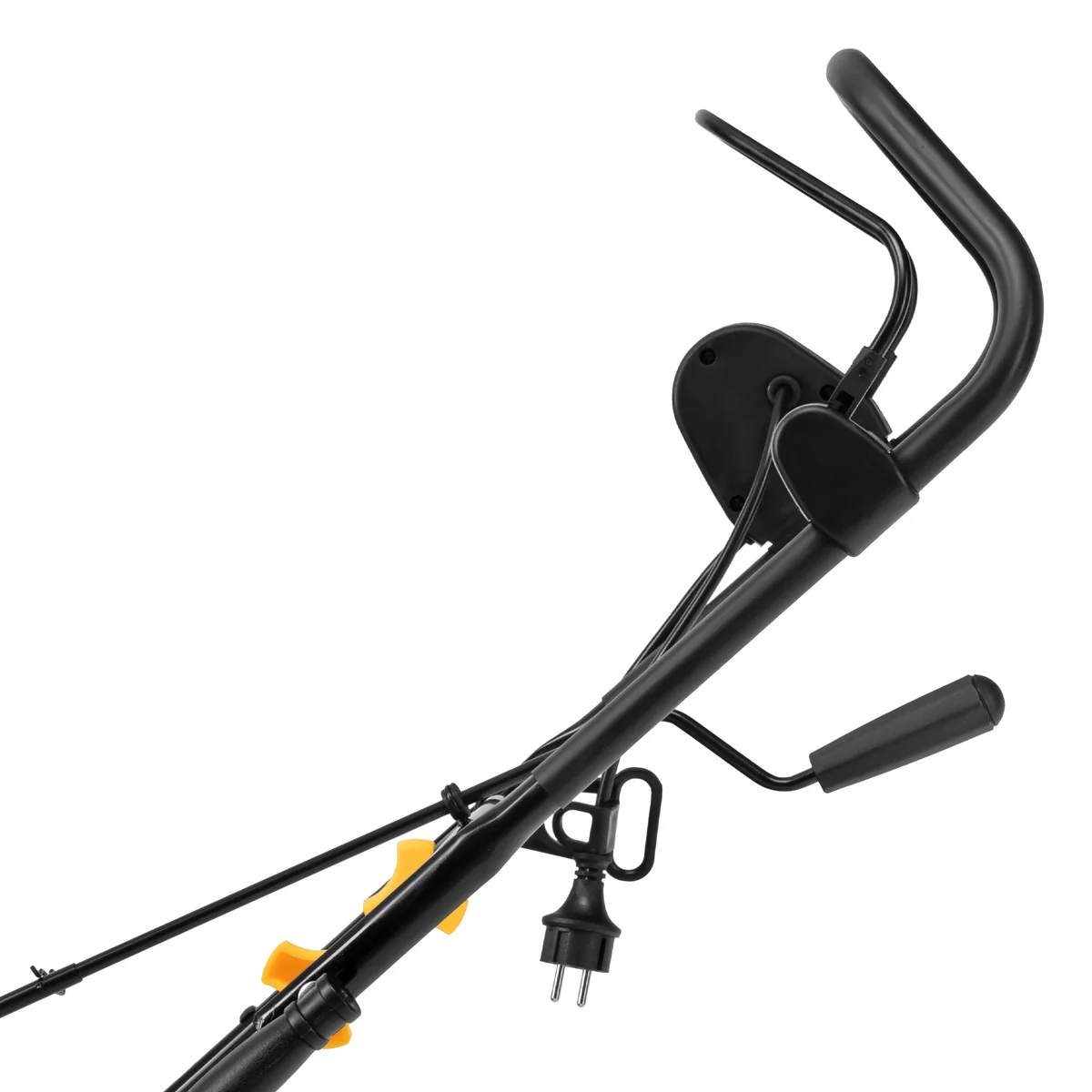 - Простая регулировка направления выброса снега — удобная рукоятка поворота желоба избавляет пользователя от необходимости наклоняться.