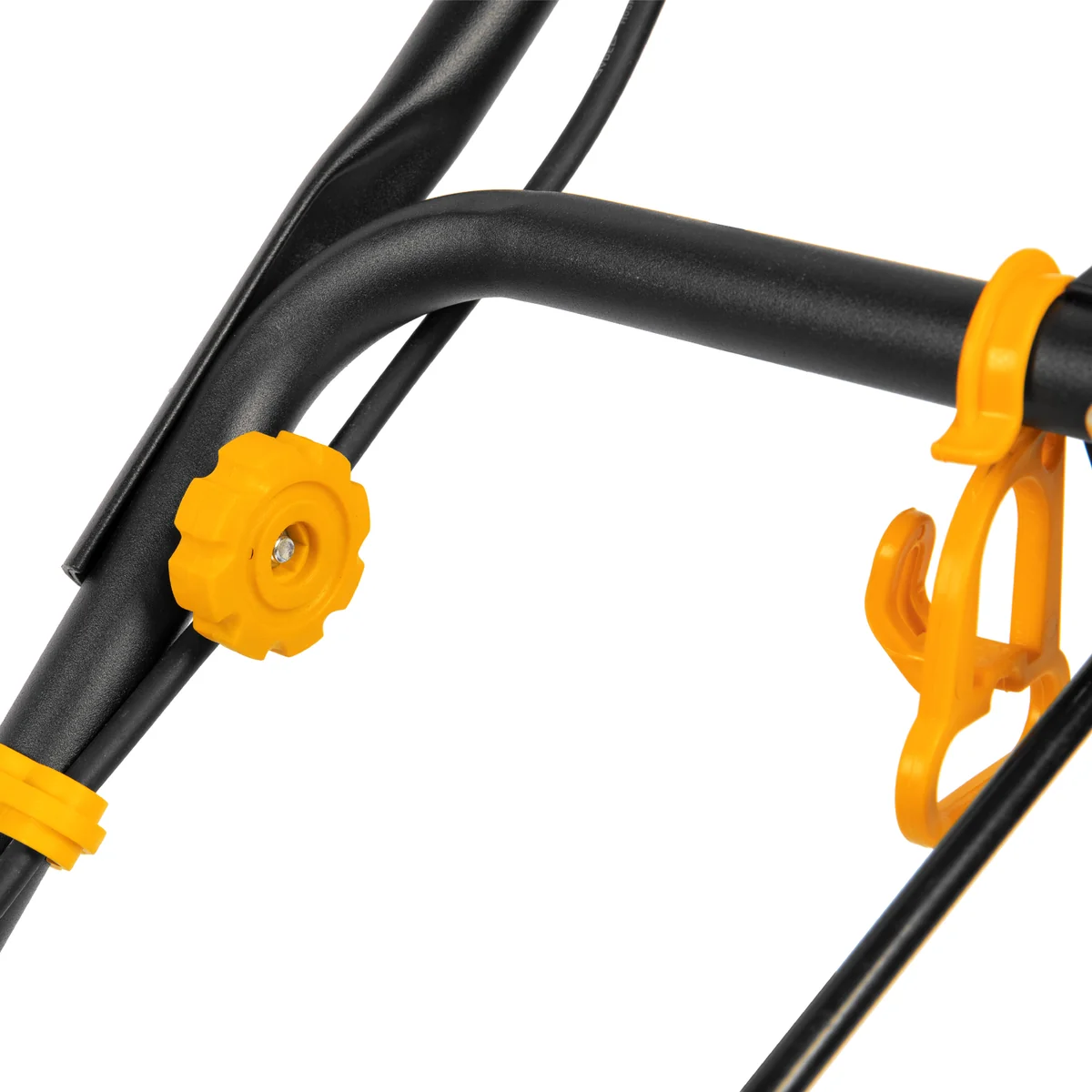 - Удобное перемещение — снегоуборочная машина имеет компактные размеры, на корпусе имеется ручка для транспортировки.