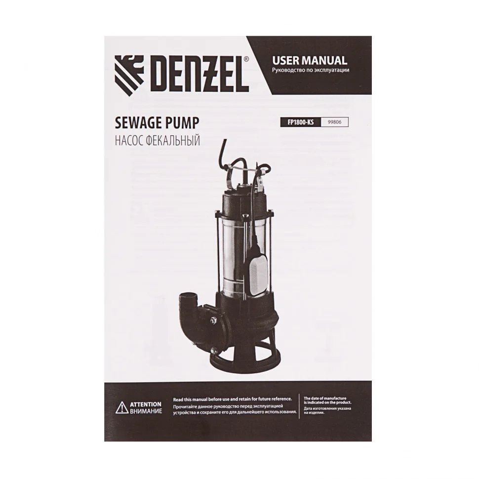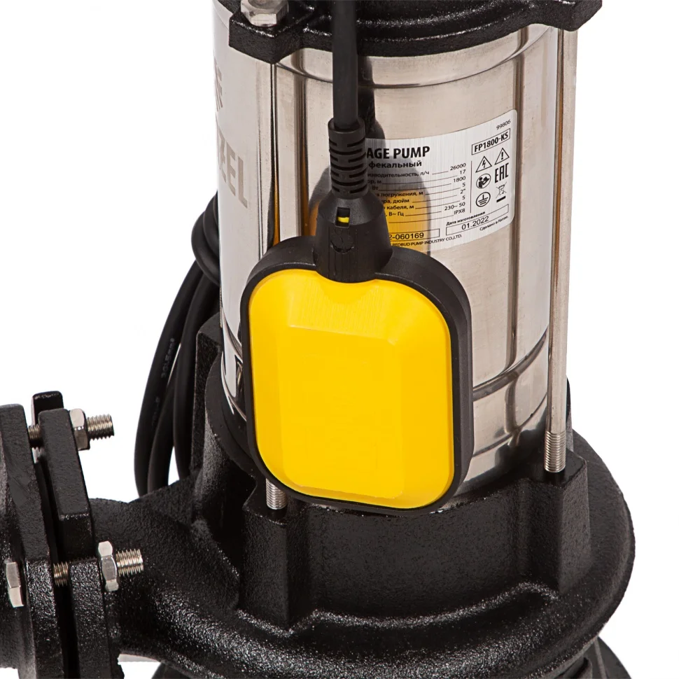 Фекальный насос FP1800-KS, 1800 Вт, напор 17 м, 26000 л/ч, нож-измельчитель Denzel 99806